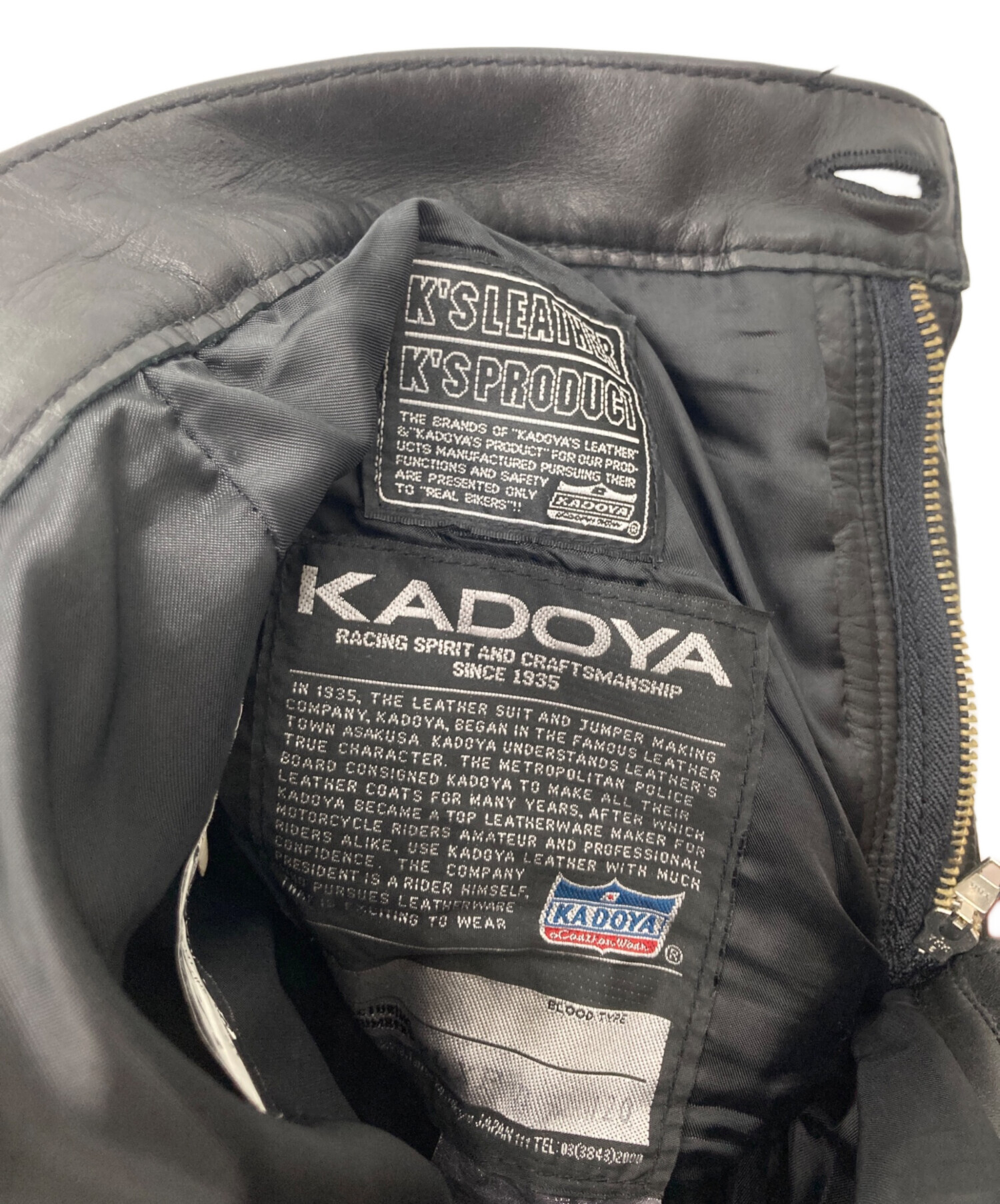 • KADOYA(カドヤ)KADOYA (カドヤ) カウレザーパンツ ブラック サイズ:W27の古着・服飾アイテム 内タグ