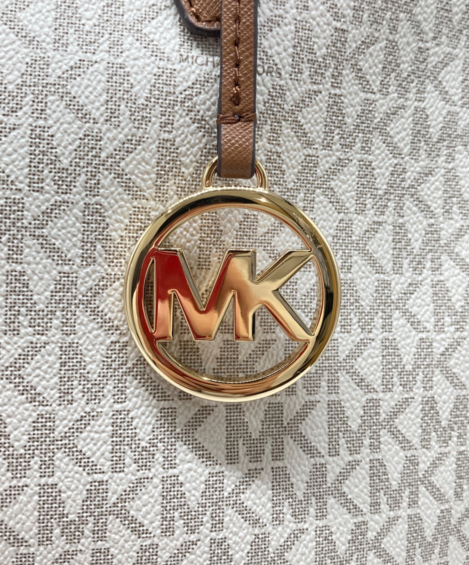 • MICHAEL KORS(マイケル・コース)MICHAEL KORS (マイケルコース) GILLY LG DRWSTG TRVL TOTE / ギリーLGトラベルトートバッグ ブラウン×ホワイトの古着・服飾アイテム ロゴチャーム有