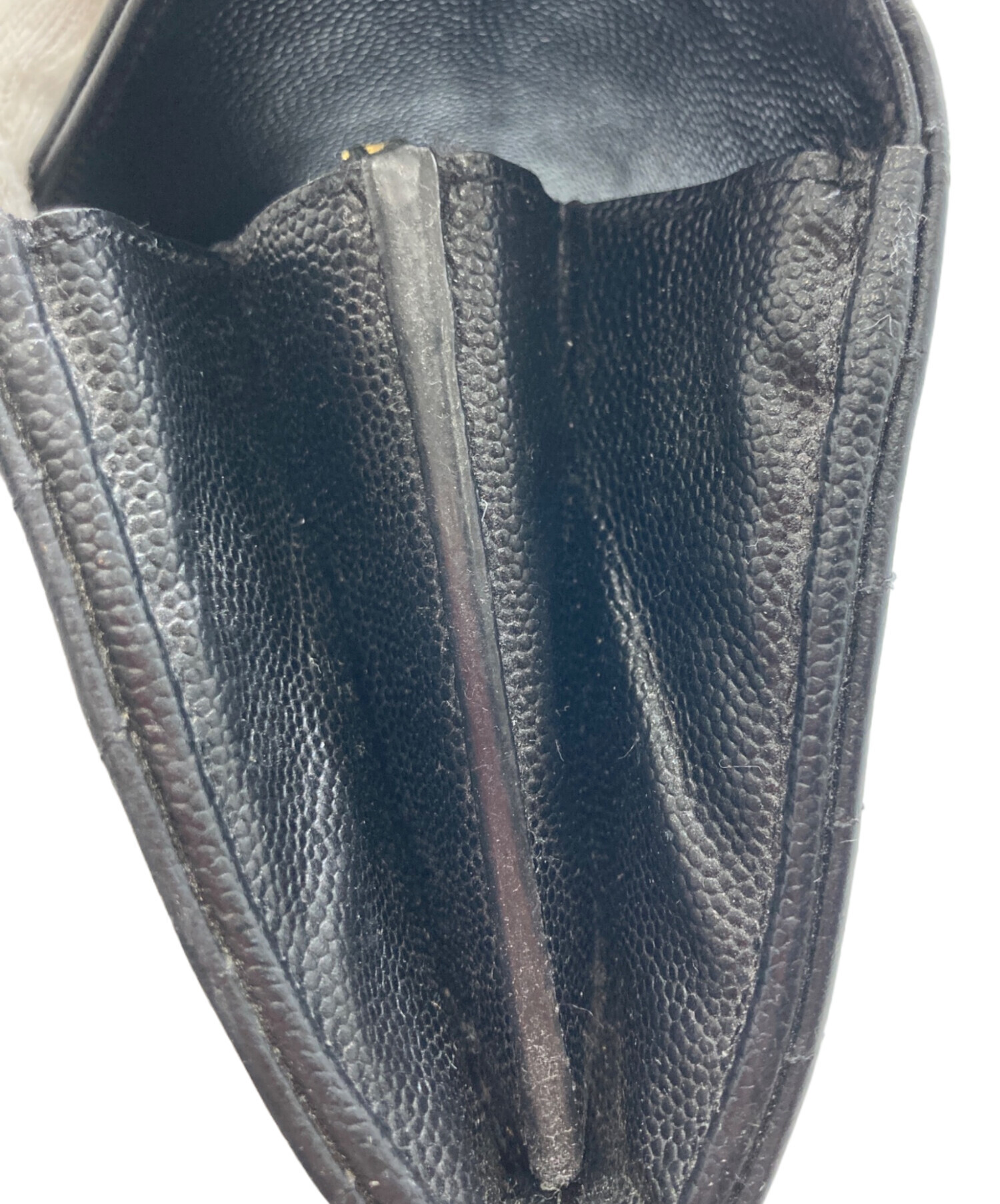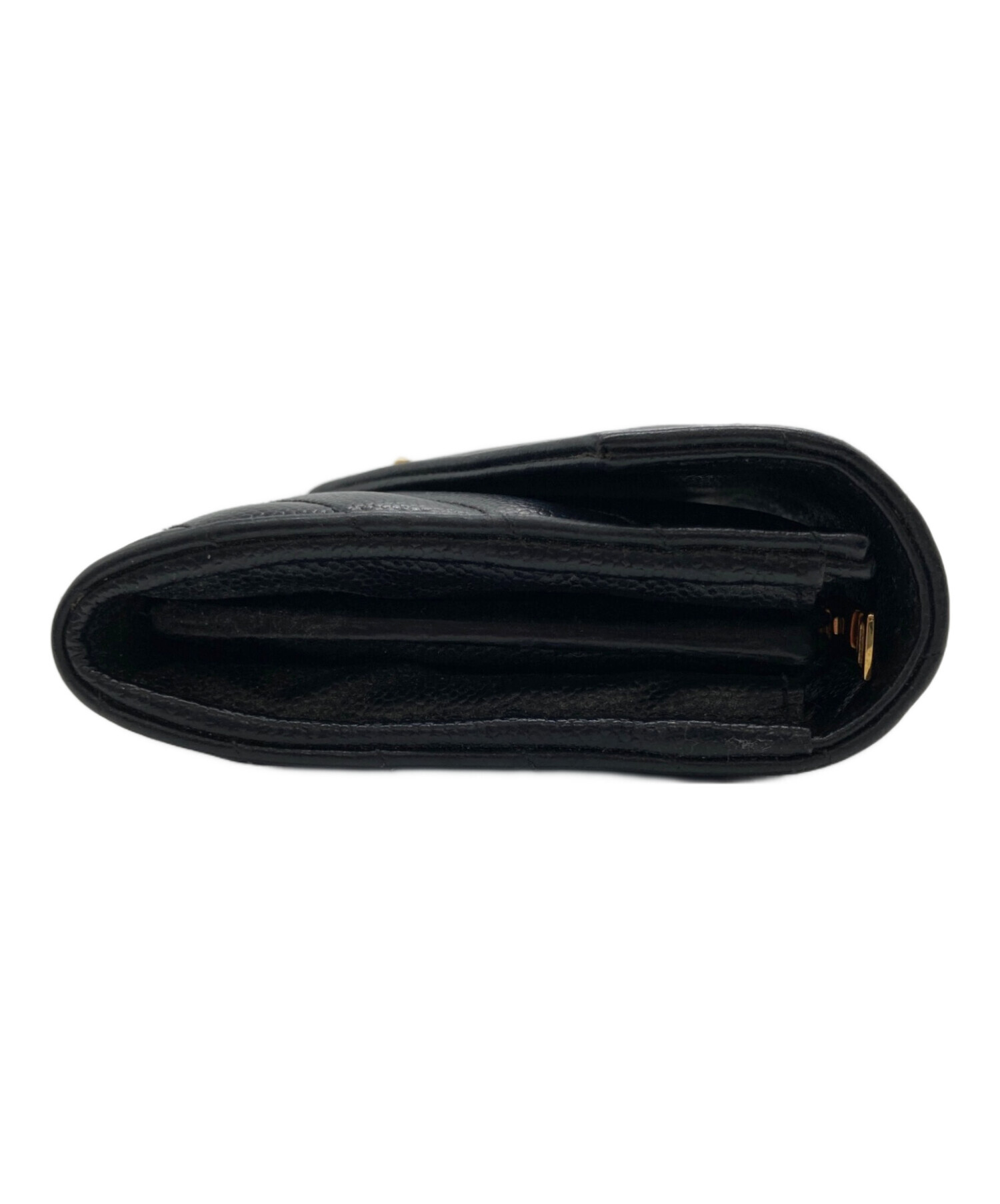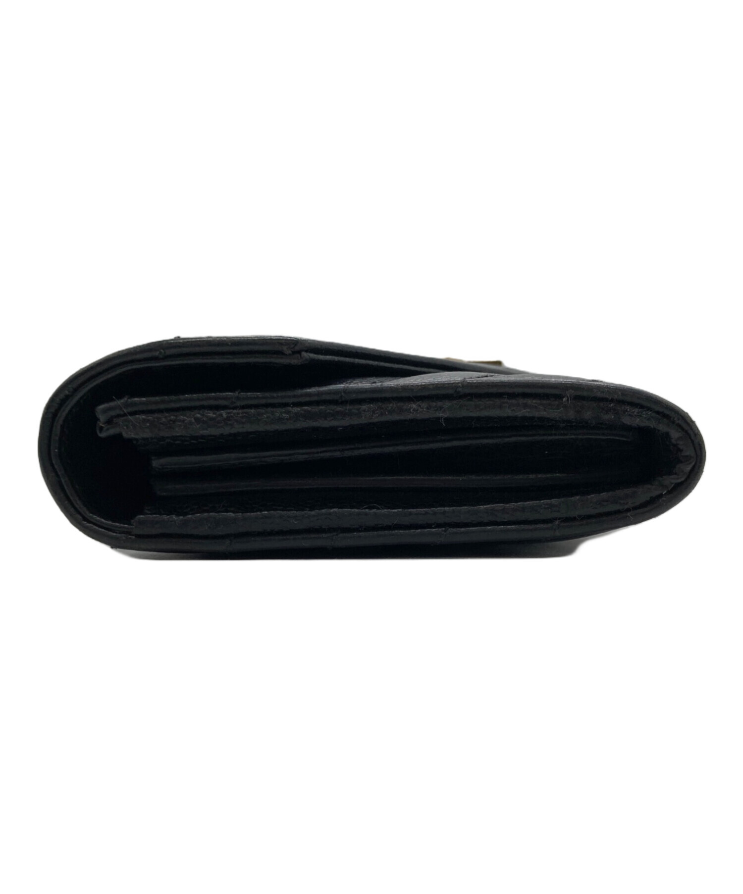 カサンドラ YSLロゴ Vステッチ キルティング フラップ ロングウォレット 長財布