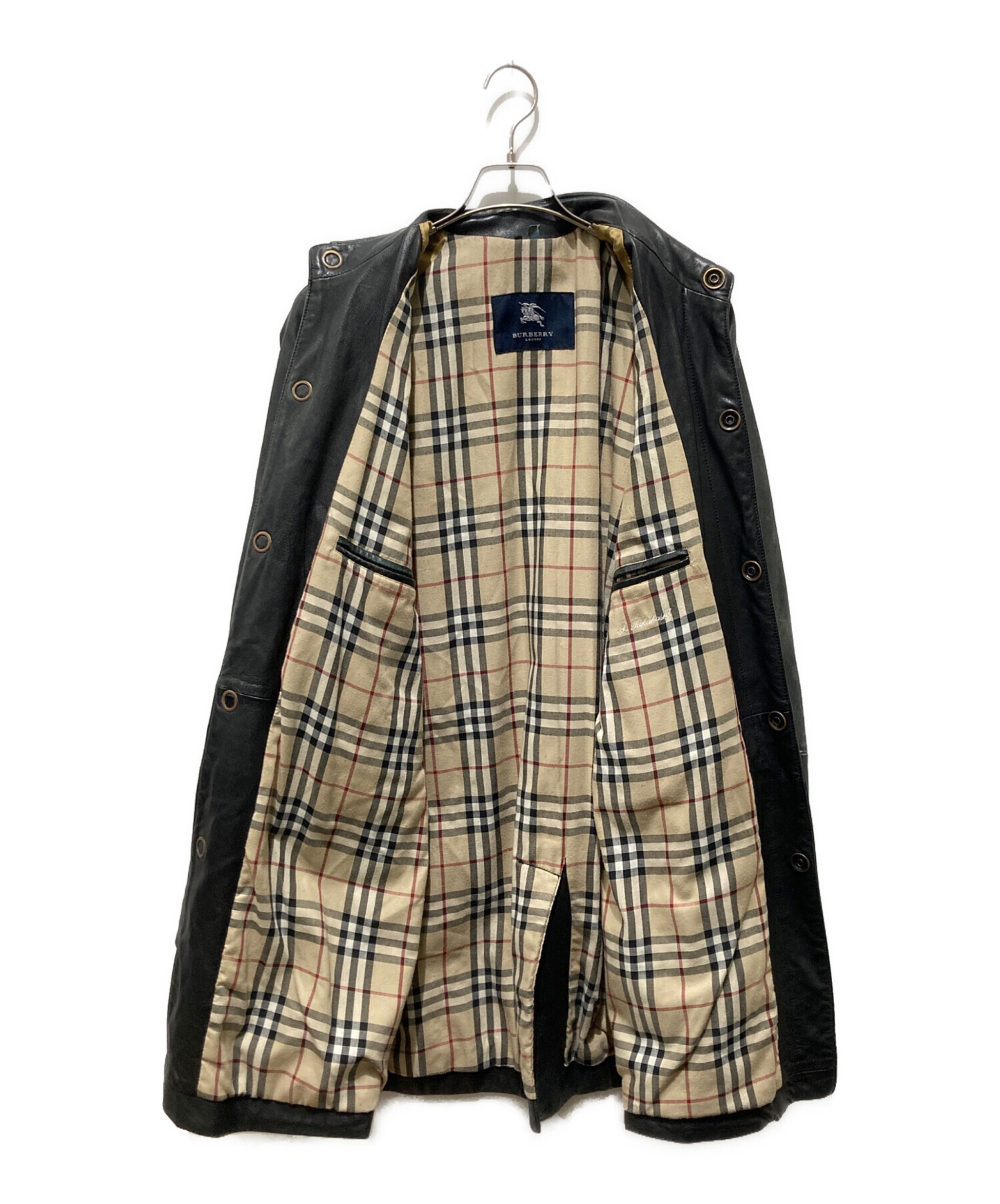• BURBERRY LONDON(バーバリーロンドン)BURBERRY LONDON (バーバリーロンドン) 裏ノバチェック レザーコート ブラック サイズ:38の古着・服飾アイテム ネーム刺繍有