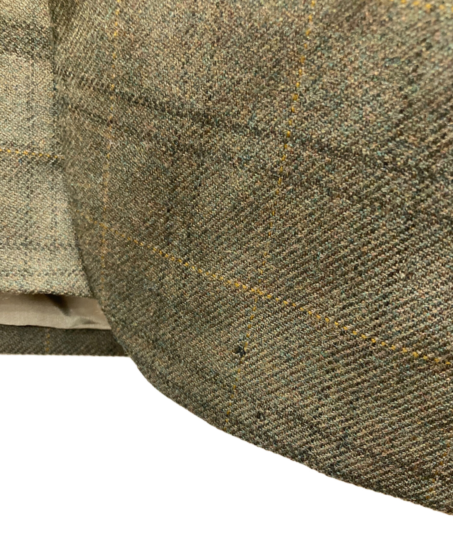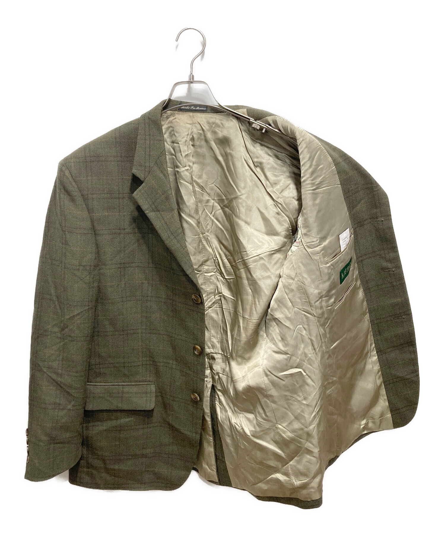 • LAUREN RALPH LAUREN(ローレンラルフローレン)LAUREN RALPH LAUREN (ローレンラルフローレン) チェックテーラードジャケット オリーブ サイズ:42Sの古着・服飾アイテム 袖裏ヨゴレ有