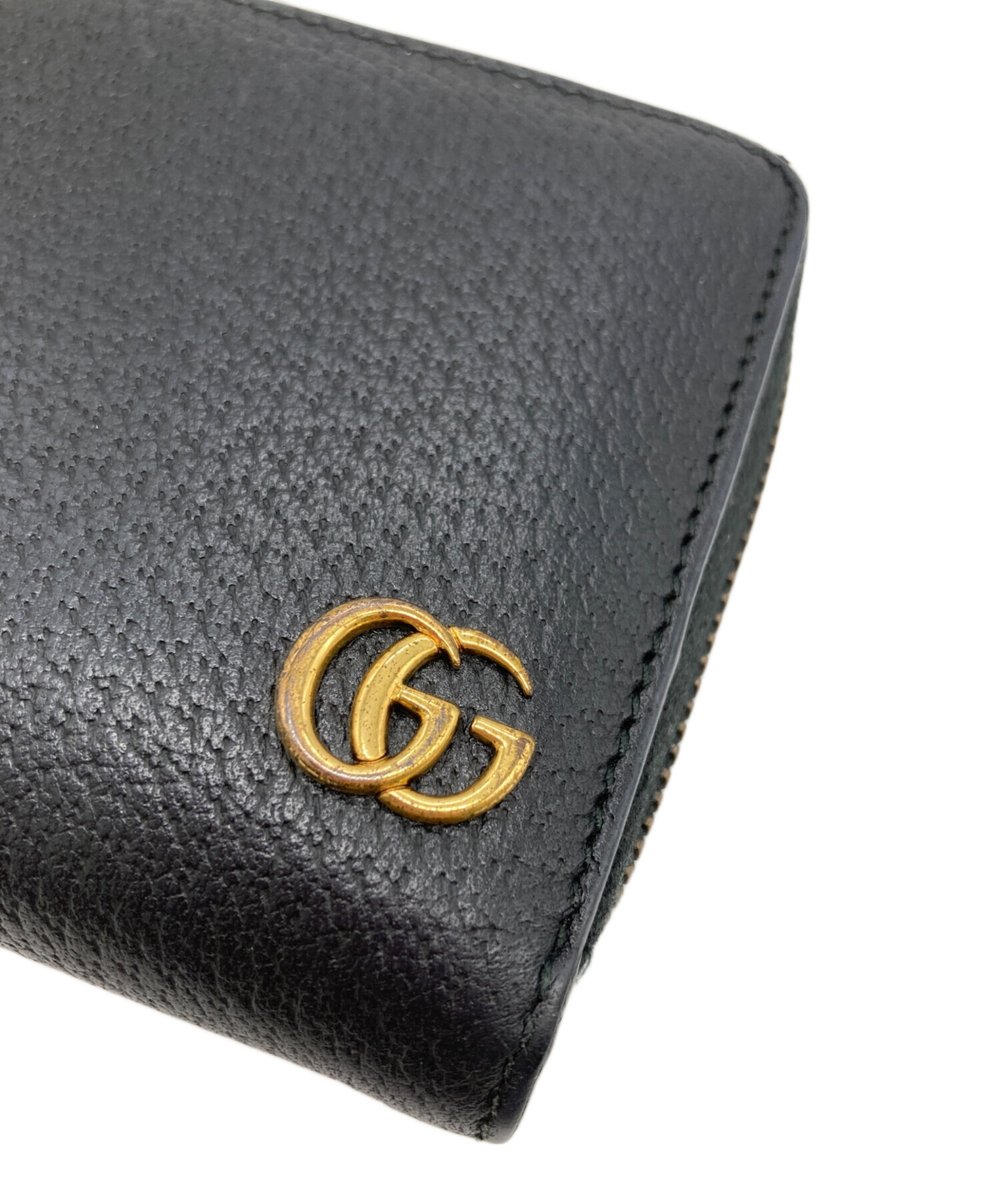 • GUCCI(グッチ)GUCCI (グッチ) GGマーモントラウンドジップウォレット ブラックの古着・服飾アイテム 内部ヨゴレ有