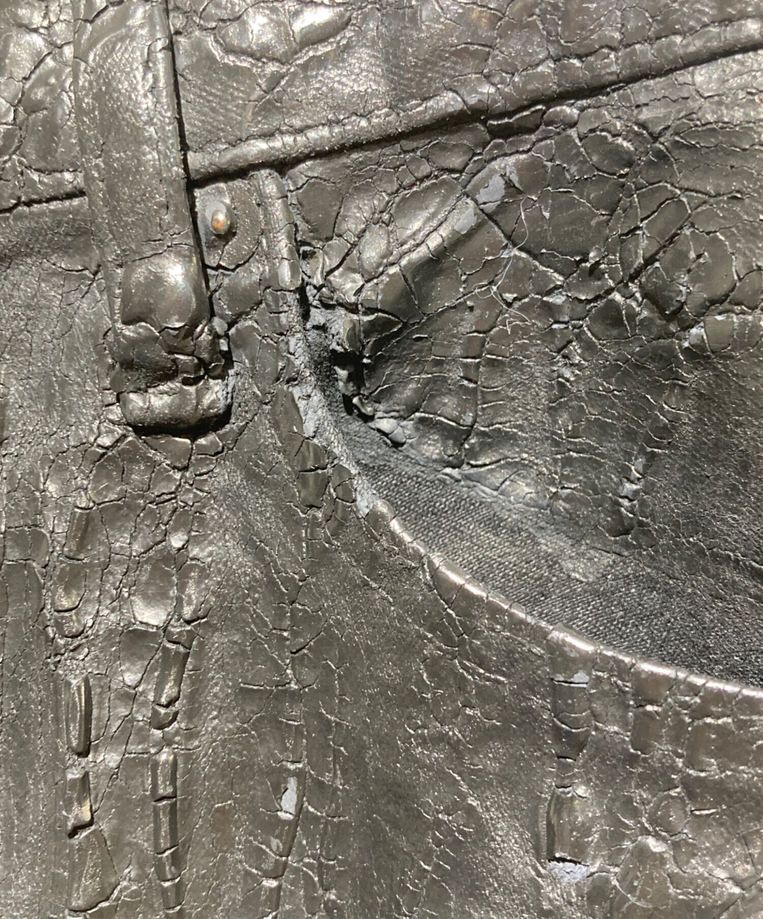 • L.G.B(ルグランブルー)L.G.B (ルグランブルー) CROCO/S-WOLF クラックコーティングパンツ ブラック サイズ:29の古着・服飾アイテム コーティング剥がれ有