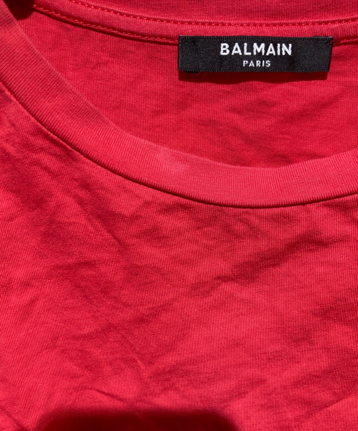 • BALMAIN(バルマン)BALMAIN (バルマン) クロップドtシャツ レッド サイズ:Sの古着・服飾アイテム 背面ヨゴレ有
