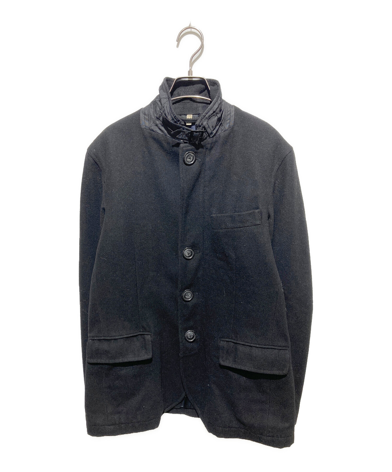 • ARMANI JEANS(アルマーニジーンズ)ARMANI JEANS (アルマーニジーンズ) チンスト付ウールジップアップジャケット ブラック サイズ:Mの古着・服飾アイテム 袖毛玉有り