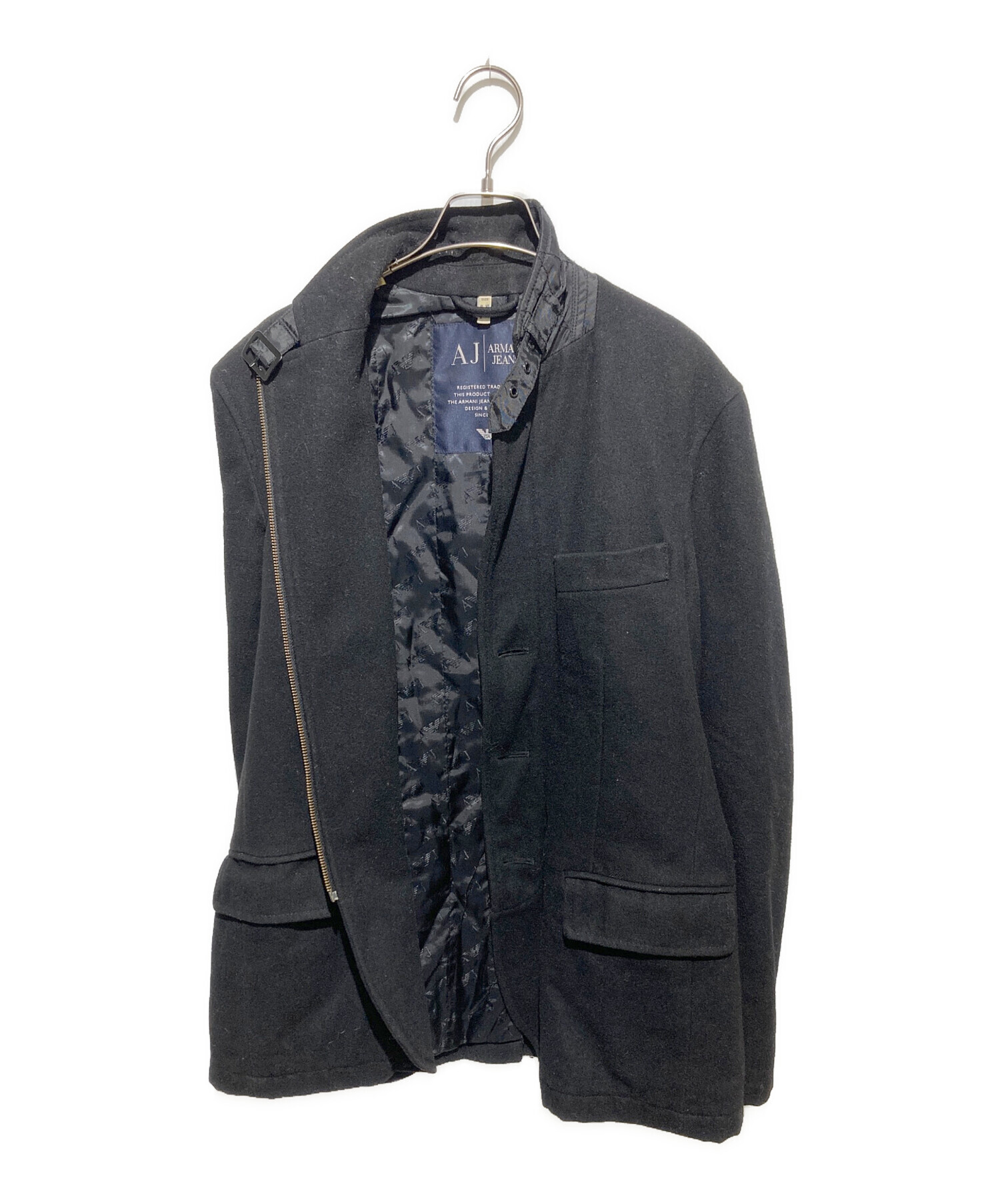 • ARMANI JEANS(アルマーニジーンズ)ARMANI JEANS (アルマーニジーンズ) チンスト付ウールジップアップジャケット ブラック サイズ:Mの古着・服飾アイテム 表面毛玉有り