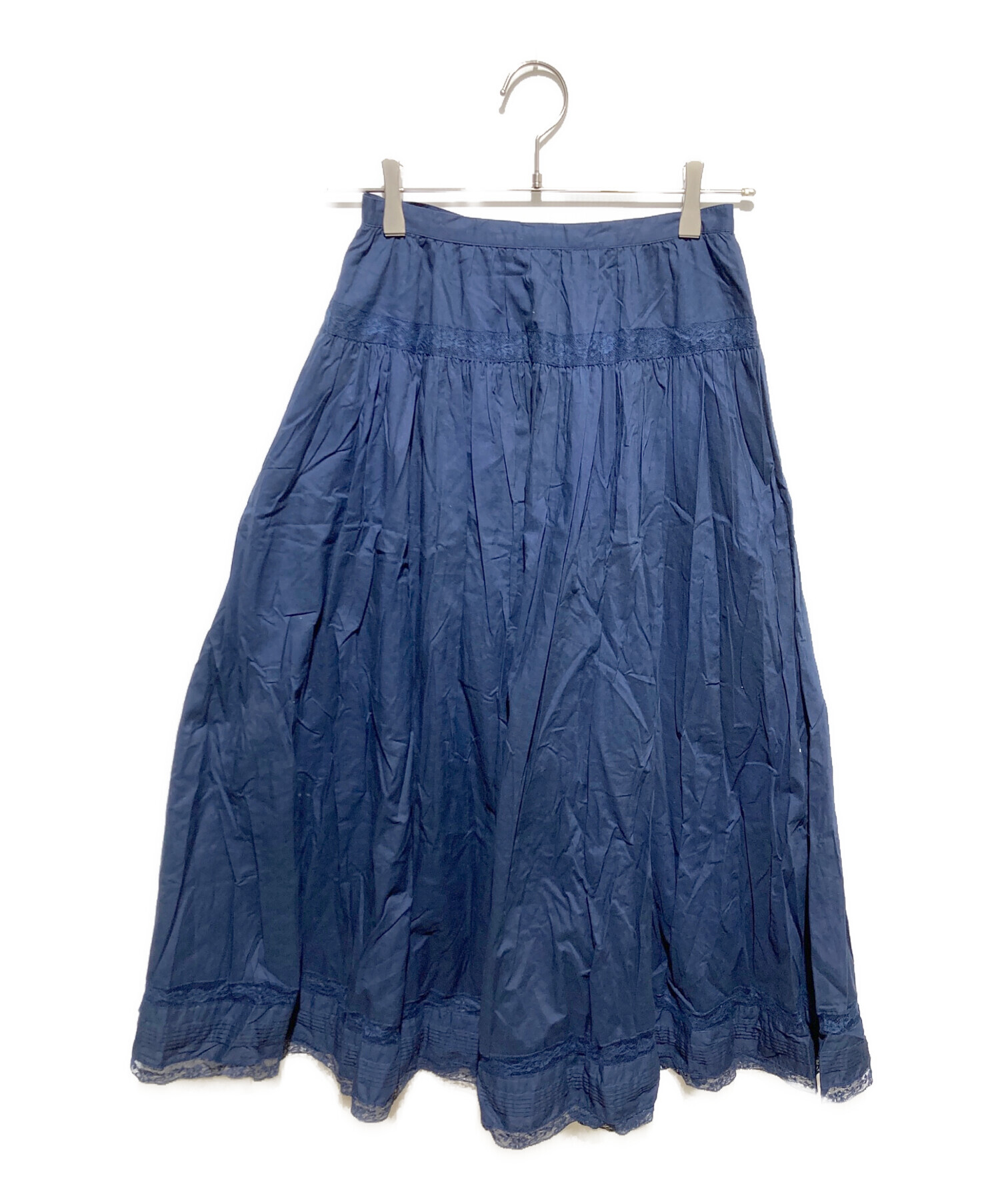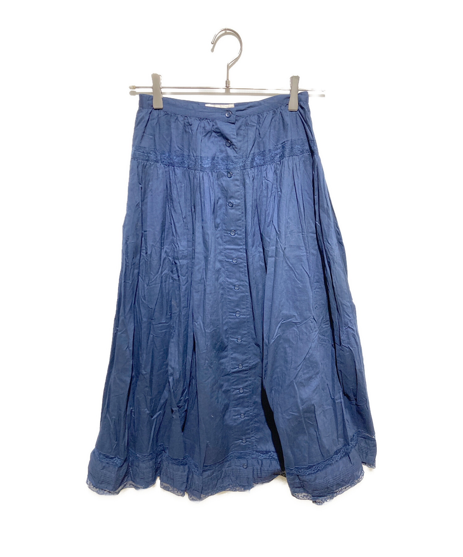 • INGEBORG(インゲボルグ)INGEBORG (インゲボルグ) レース切替スカート ネイビー サイズ:Sの古着・服飾アイテム フロントヨゴレ有