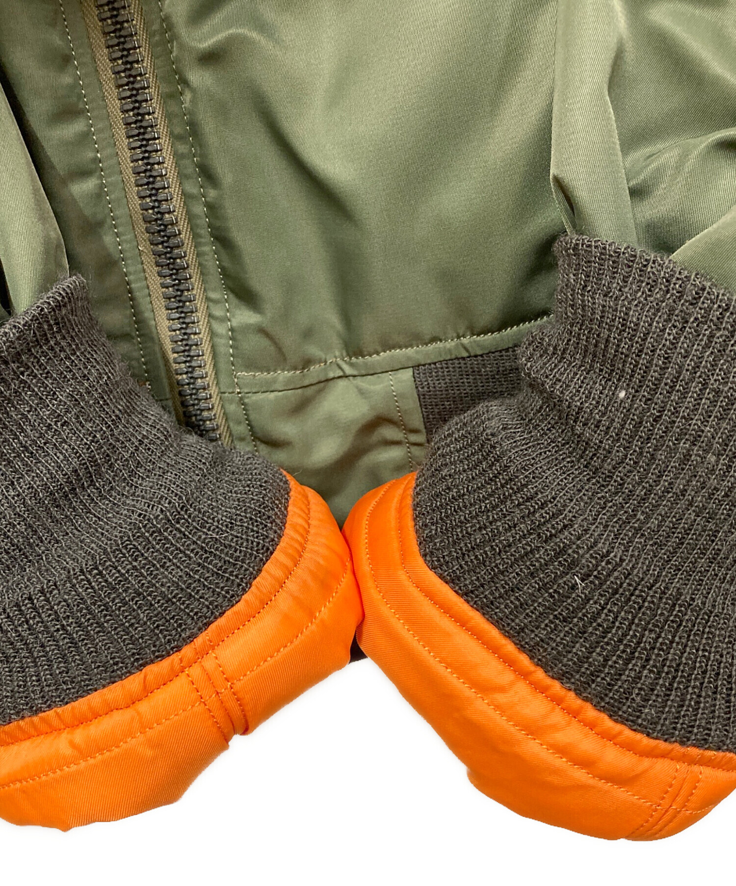 • BUZZ RICKSON'S(バズリクソンズ)Buzz Rickson's (バズリクソンズ) BEAMS BOY (ビームスボーイ) 60S復刻D型MA-1フライトジャケット オレンジ×カーキ サイズ:SIZE Lの古着・服飾アイテム 袖口毛羽立ち有