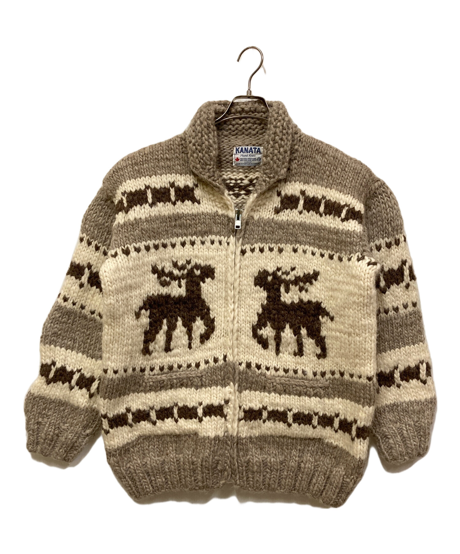 • KANATA(カナタ)KANATA (カナタ) カウチンニットカーディガン ベージュ サイズ:表記なしの古着・服飾アイテム 金具部分キズ有