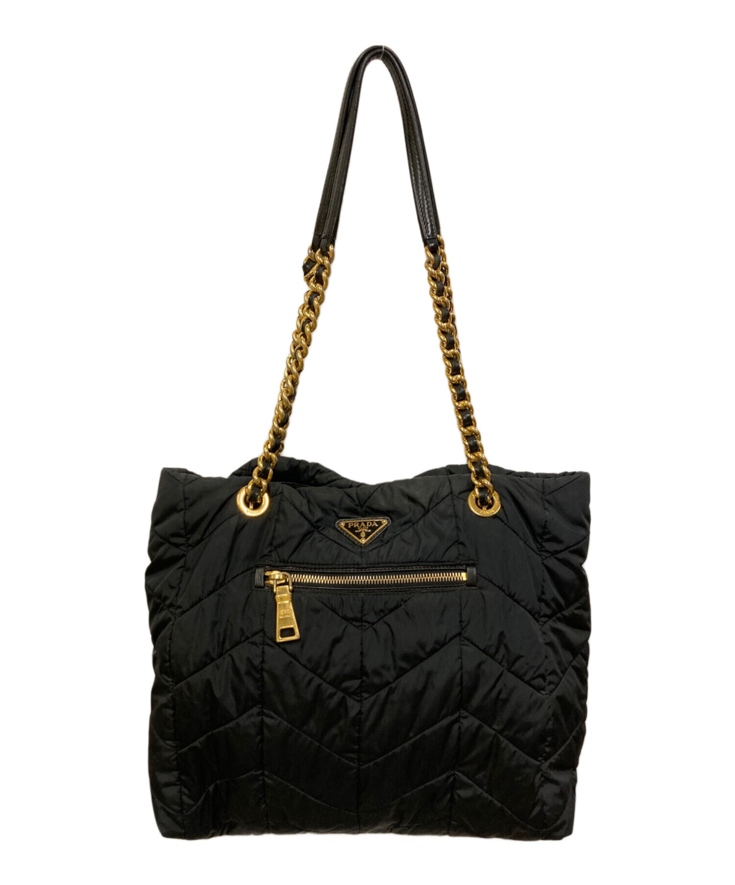 • PRADA(プラダ)PRADA (プラダ) ナイロンチェーンハンドルトートバッグ/ギャランティカード・保存袋付 NERO サイズ:表記なしの古着・服飾アイテム フロントヨゴレ有