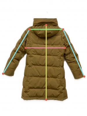 | 素材 | 表地:ポリエステル 82% 綿 18% 裏地:ポリエステル 100% 詰物:ダウン 80% フェザー 20% 部分:アクリル 88% ポリエステル 11% ポリウレタン 1% ファー部分:タヌキ (チャイニーズラクーン) |