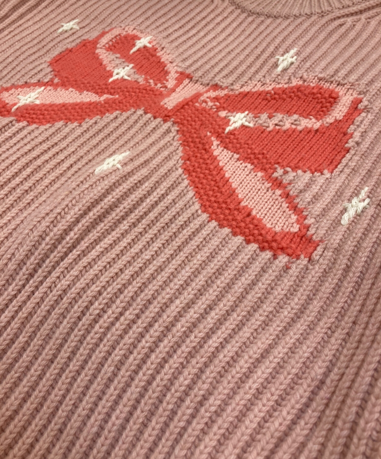 • COACH(コーチ)COACH (コーチ) クルーネック ボウ セーター リサイクルウール ピンク サイズ:Sの古着・服飾アイテム