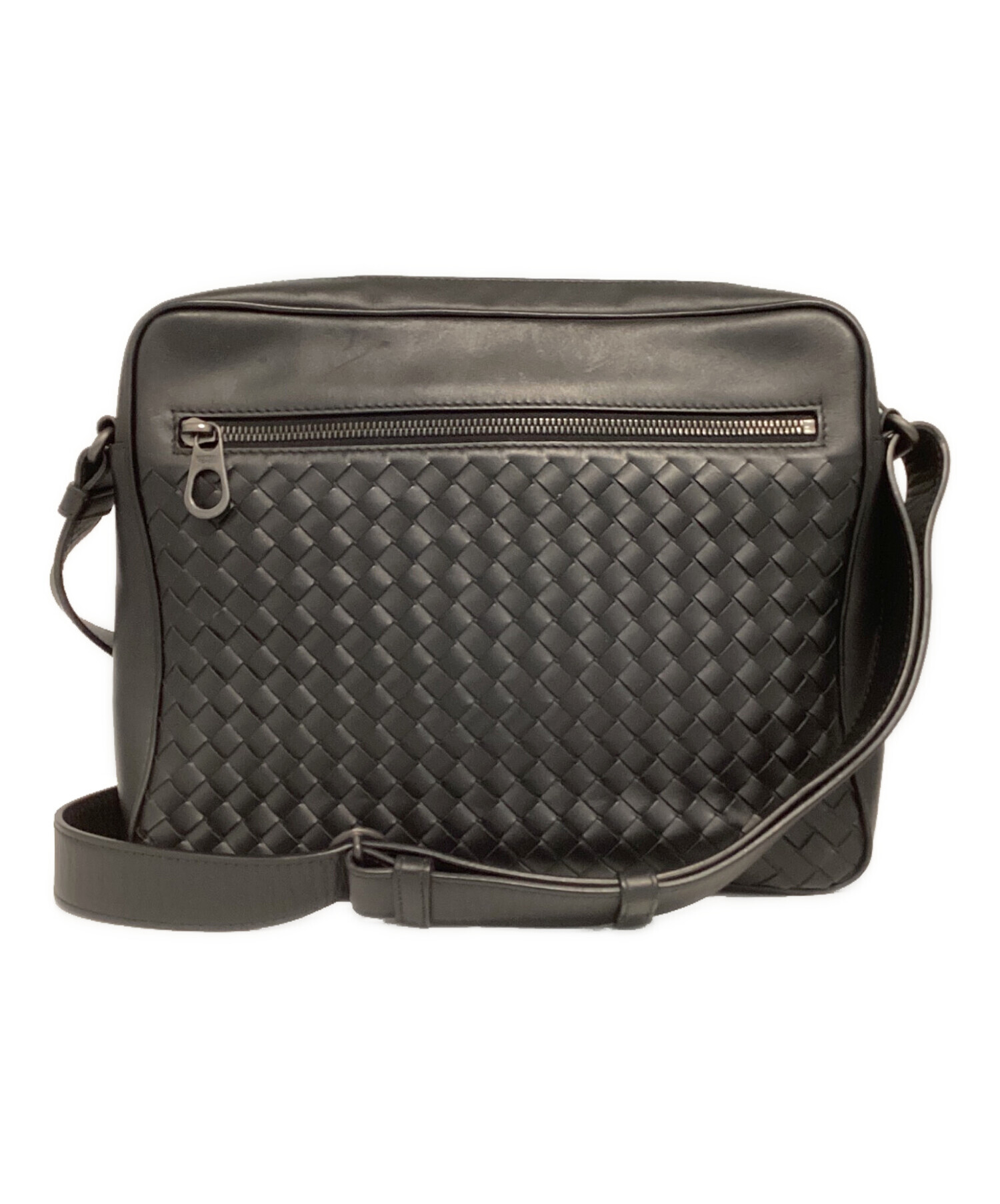 • BOTTEGA VENETA(ボッテガベネタ)BOTTEGA VENETA (ボッテガベネタ) イントレチャートメッセンジャーバッグ ブラックの古着・服飾アイテム 小スレ・キズ有