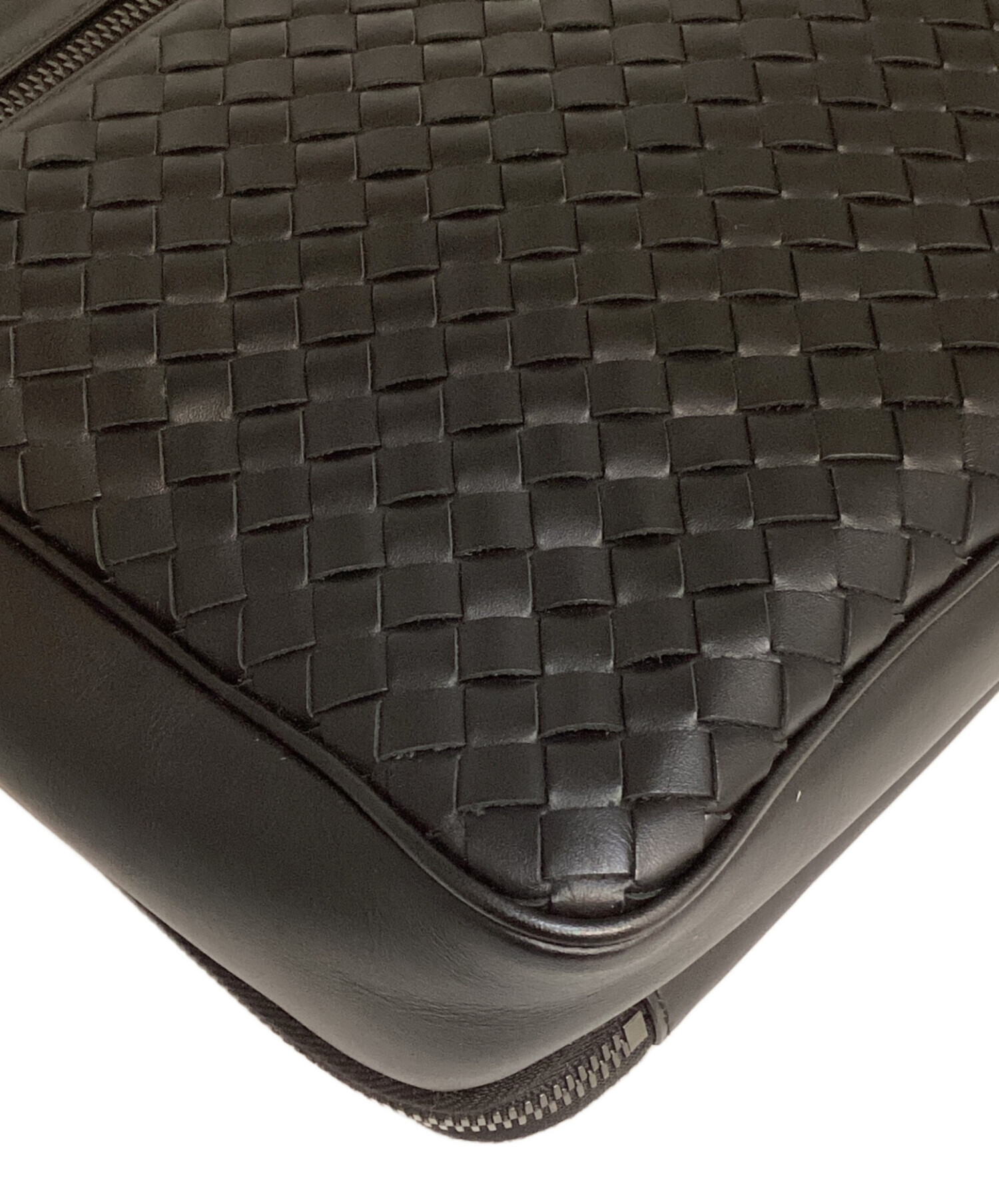 • BOTTEGA VENETA(ボッテガベネタ)BOTTEGA VENETA (ボッテガベネタ) イントレチャートメッセンジャーバッグ ブラックの古着・服飾アイテム 底スレ有
