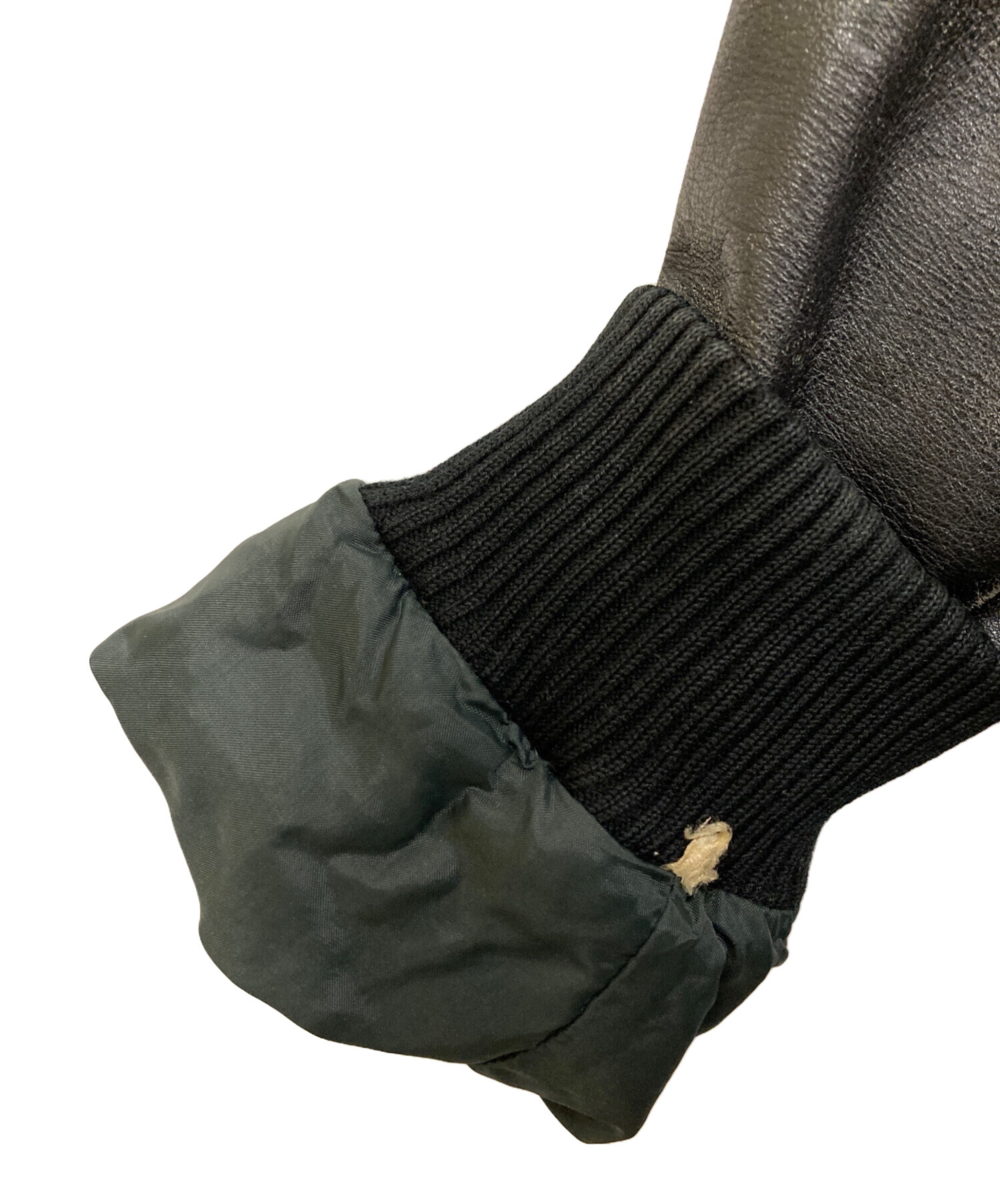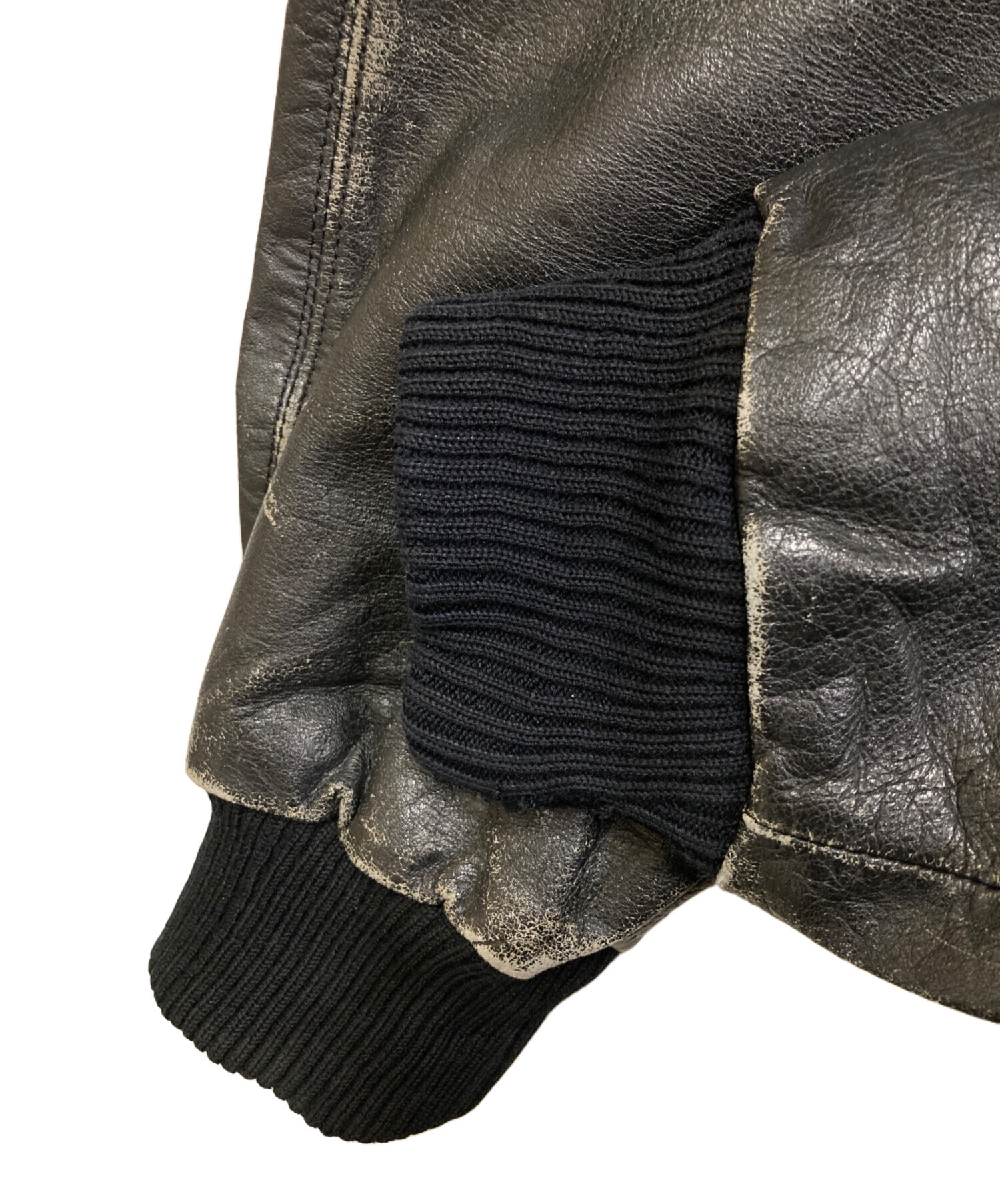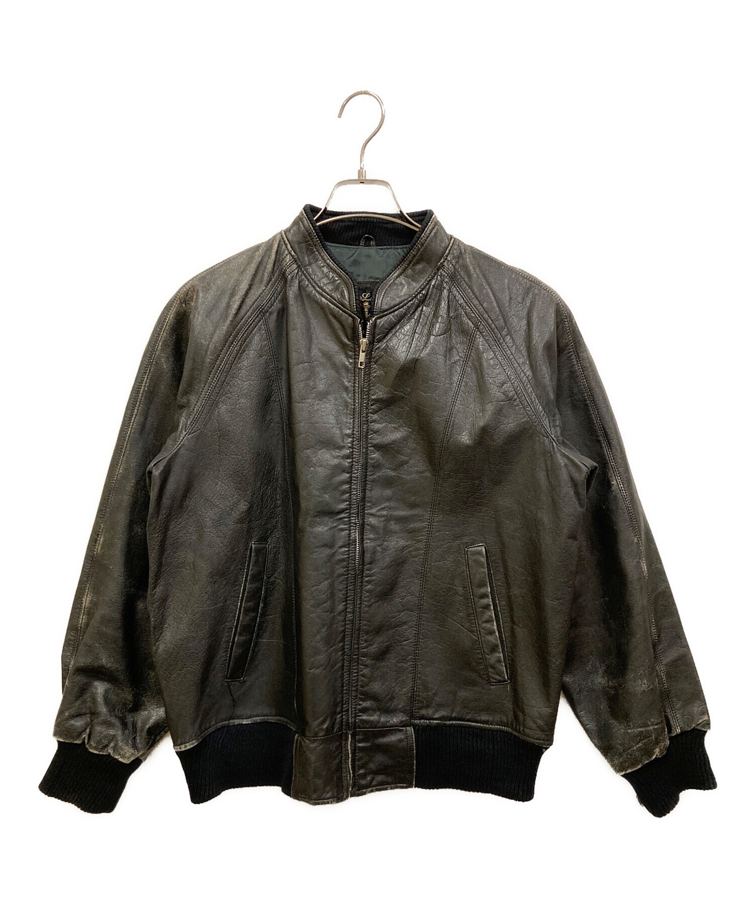 • DELUXE(デラックス)Deluxe (デラックス) カウレザーボンバージャケット ブラック サイズ:SIZE Lの古着・服飾アイテム 袖口ヨゴレ有
