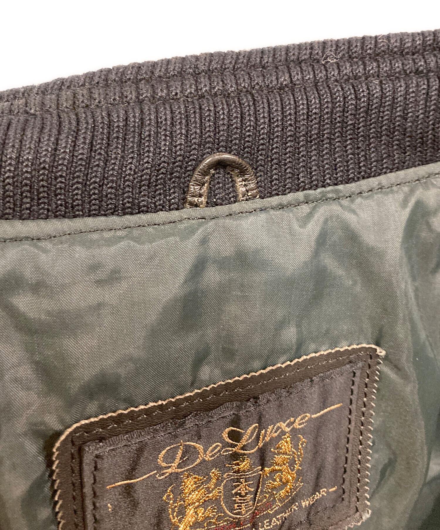 • DELUXE(デラックス)Deluxe (デラックス) カウレザーボンバージャケット ブラック サイズ:SIZE Lの古着・服飾アイテム 袖口ヨゴレ・ヤブレ有