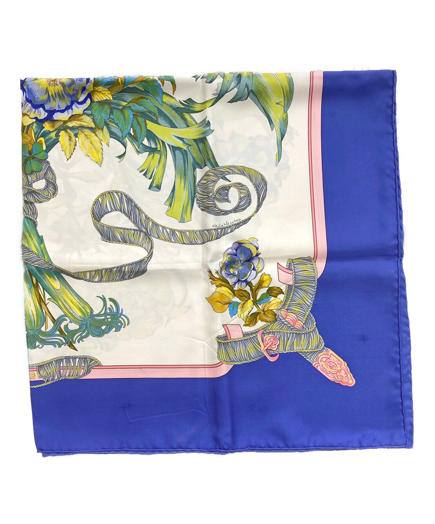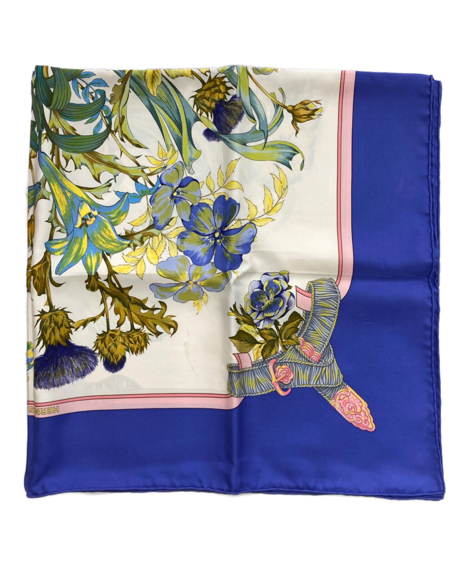 • HERMES(エルメス)HERMES (エルメス) カレ90 / REGINA/女王陛下 ブルーの古着・服飾アイテム ヨゴレ有