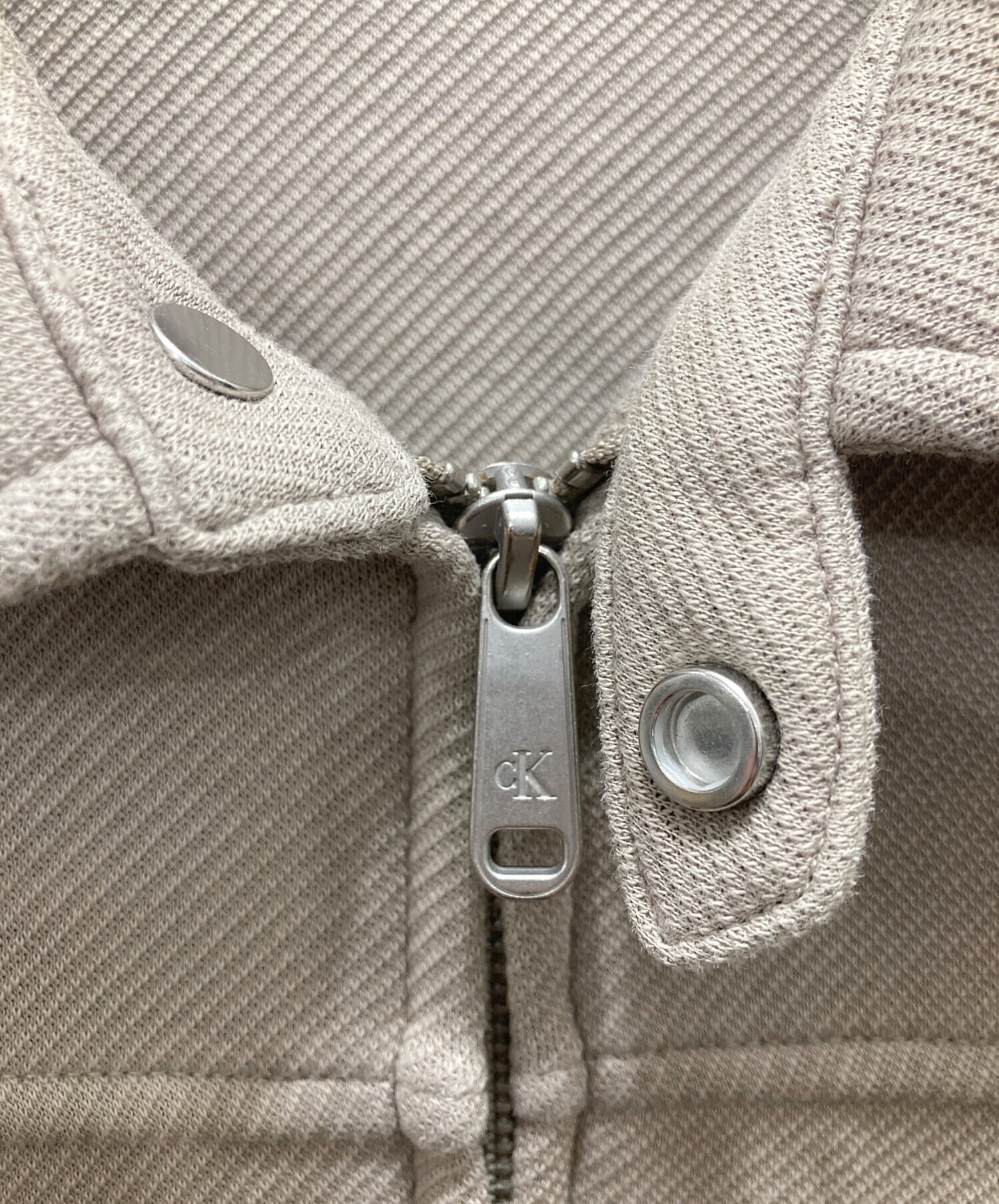 • Calvin Klein Jeans(カルバンクラインジーンズ)Calvin Klein Jeans (カルバンクラインジーンズ) クラシックトラッカージャケット ベージュ サイズ:Sの古着・服飾アイテム 右袖裏肩付近シミ有