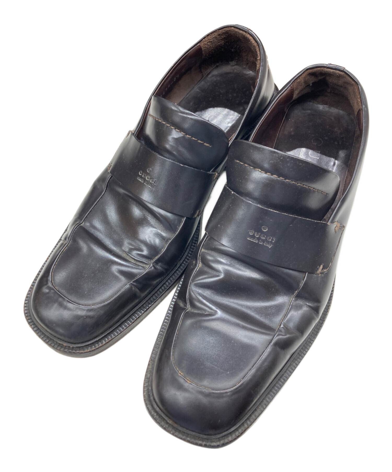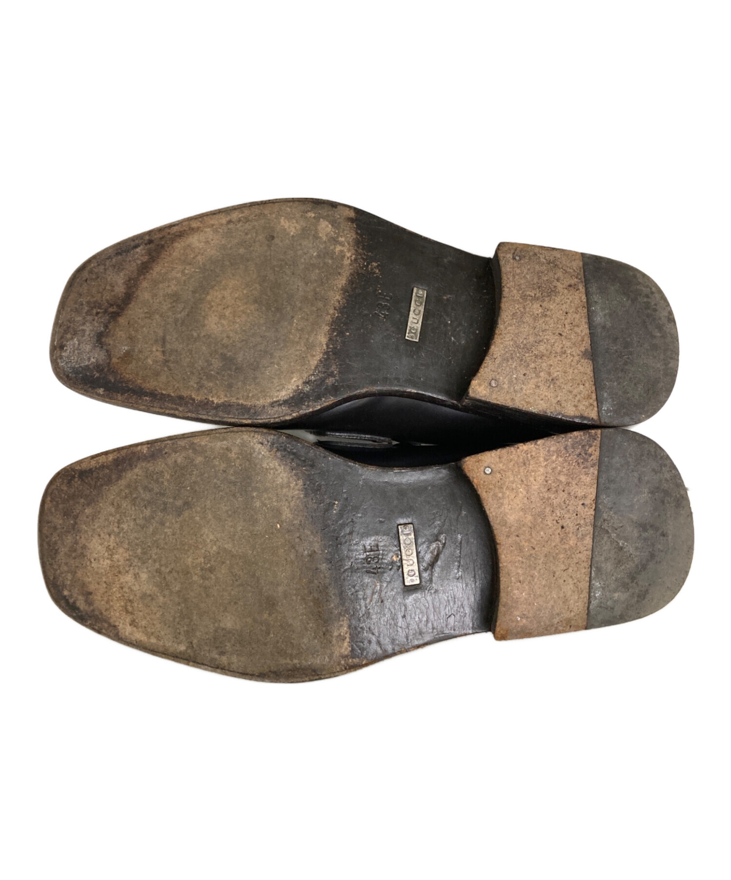 • GUCCI(グッチ)GUCCI (グッチ) スクエアトゥコインローファー ブラウン サイズ:43Eの古着・服飾アイテム ソール減り