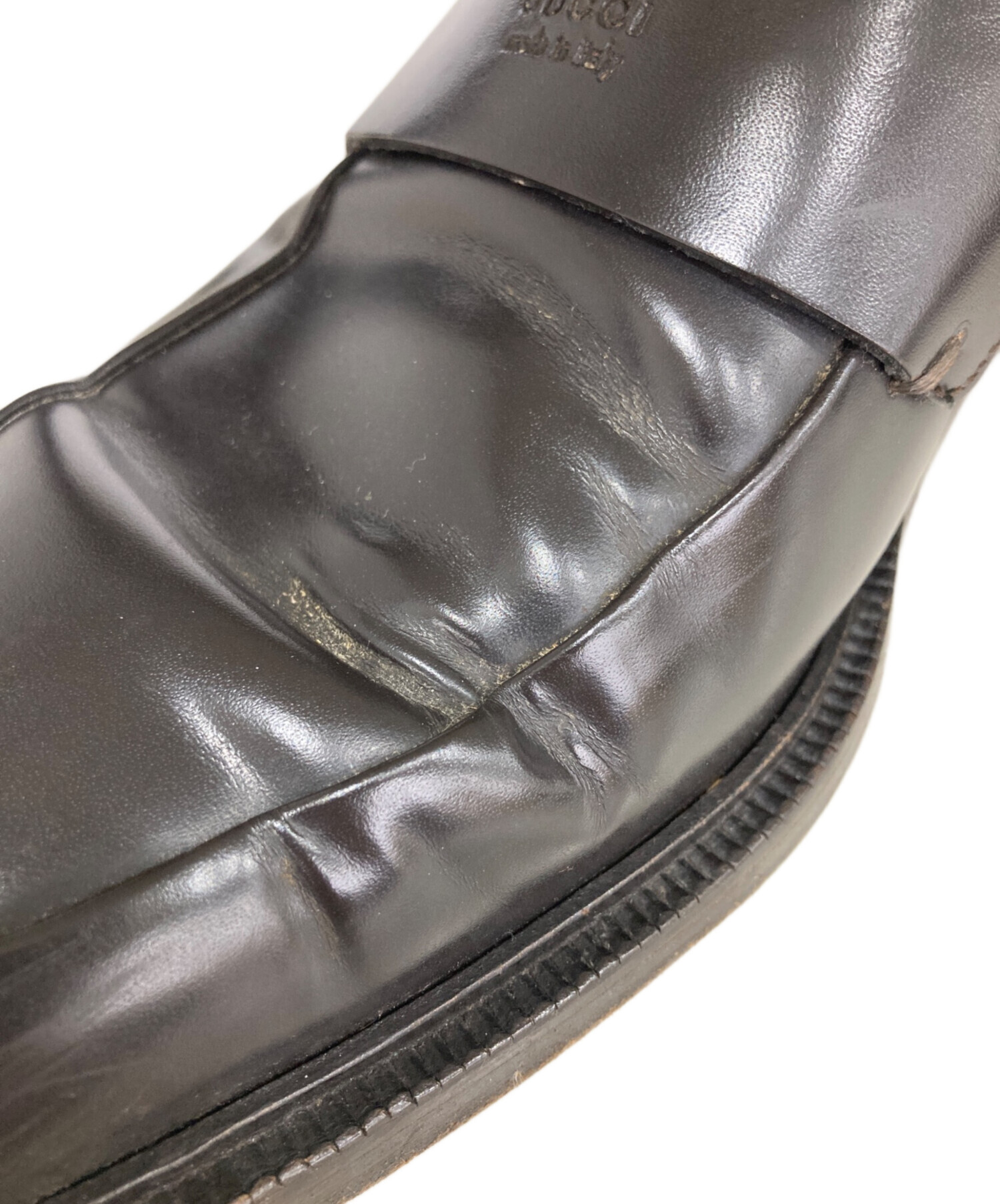 • GUCCI(グッチ)GUCCI (グッチ) スクエアトゥコインローファー ブラウン サイズ:43Eの古着・服飾アイテム 亀裂