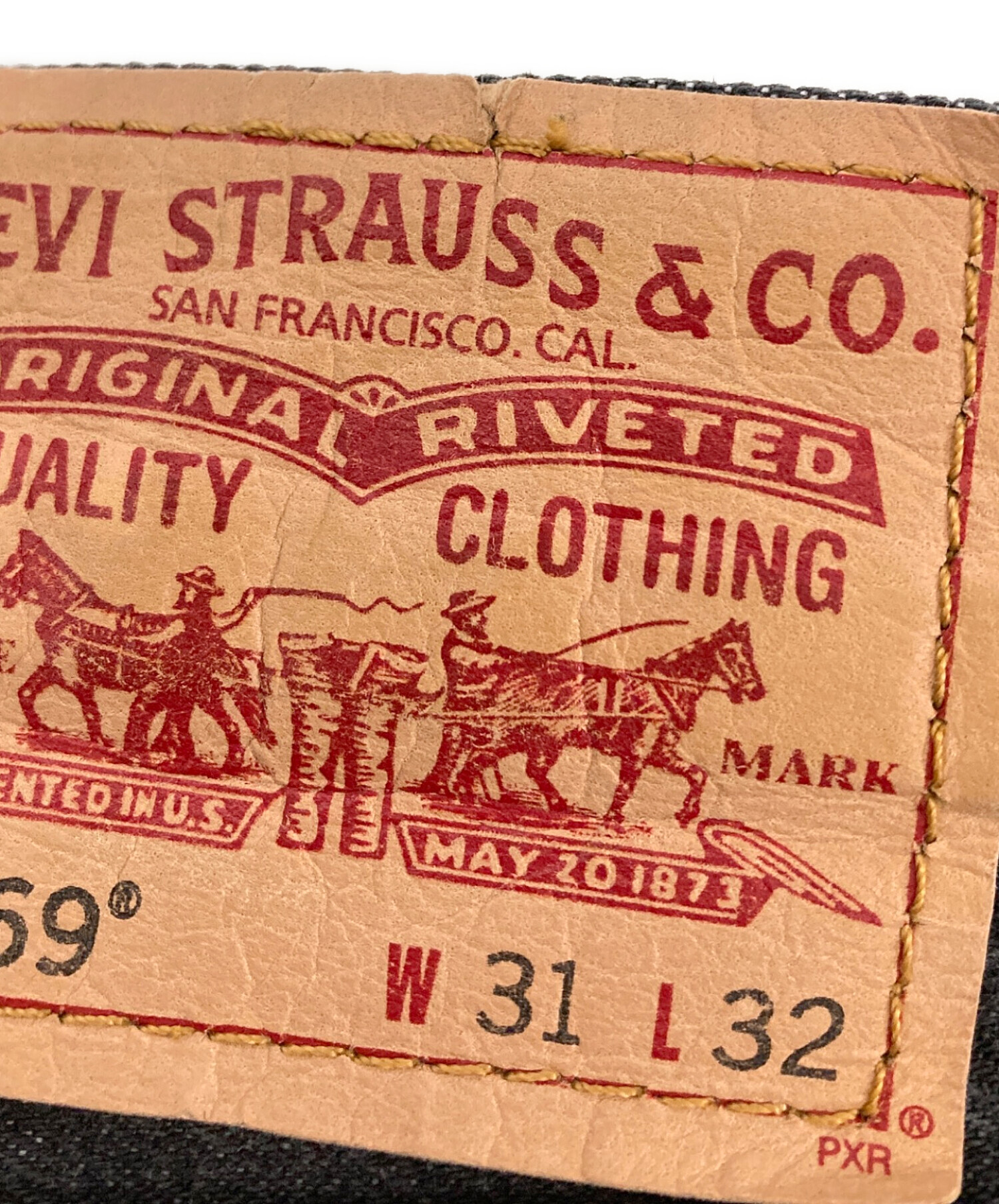 • LEVI'S(リーバイス)LEVI'S (リーバイス) 先染め569デニムパンツ ブラック サイズ:31の古着・服飾アイテム 革パッチダメージ