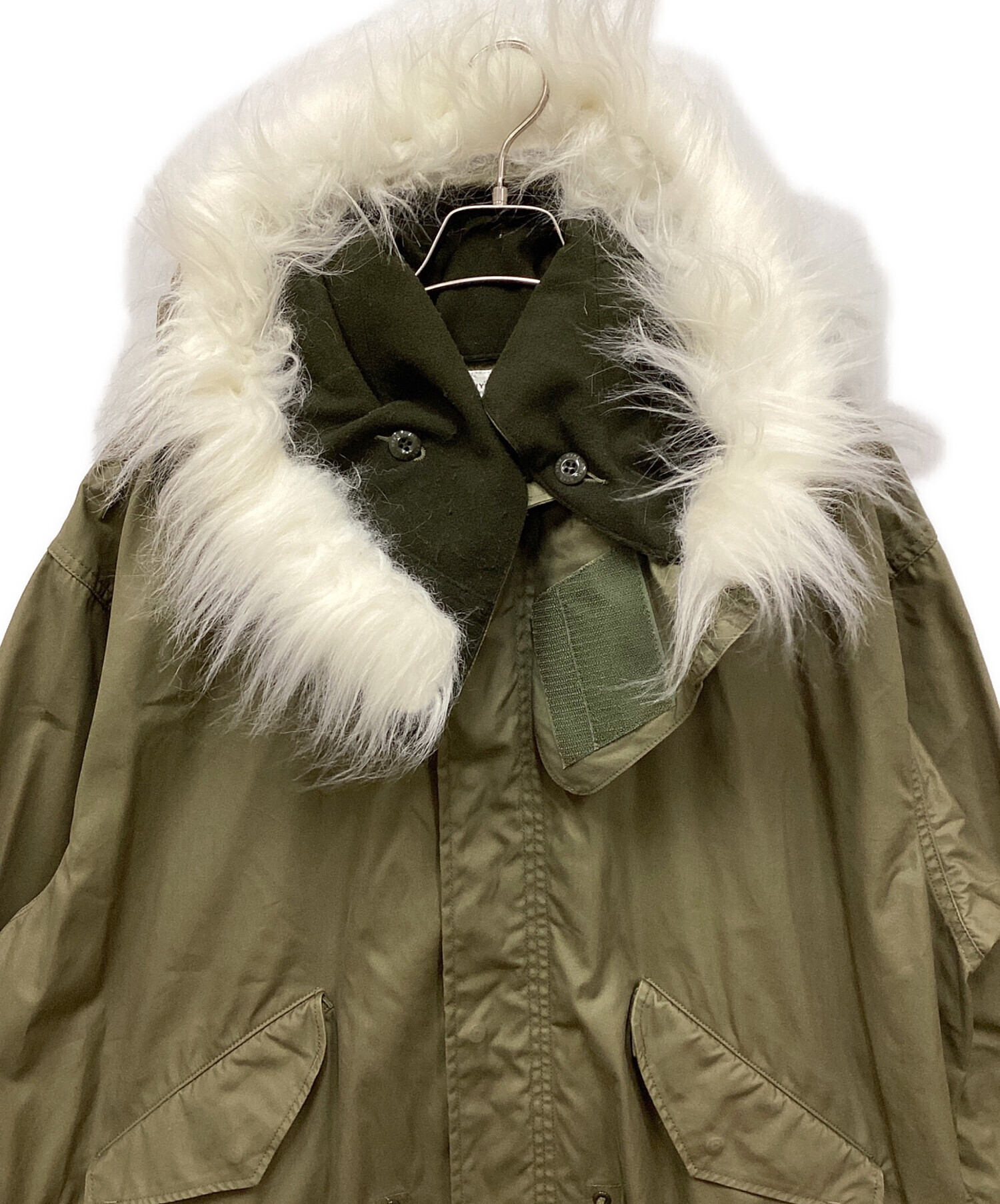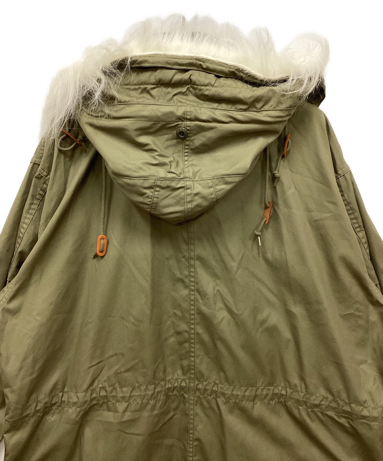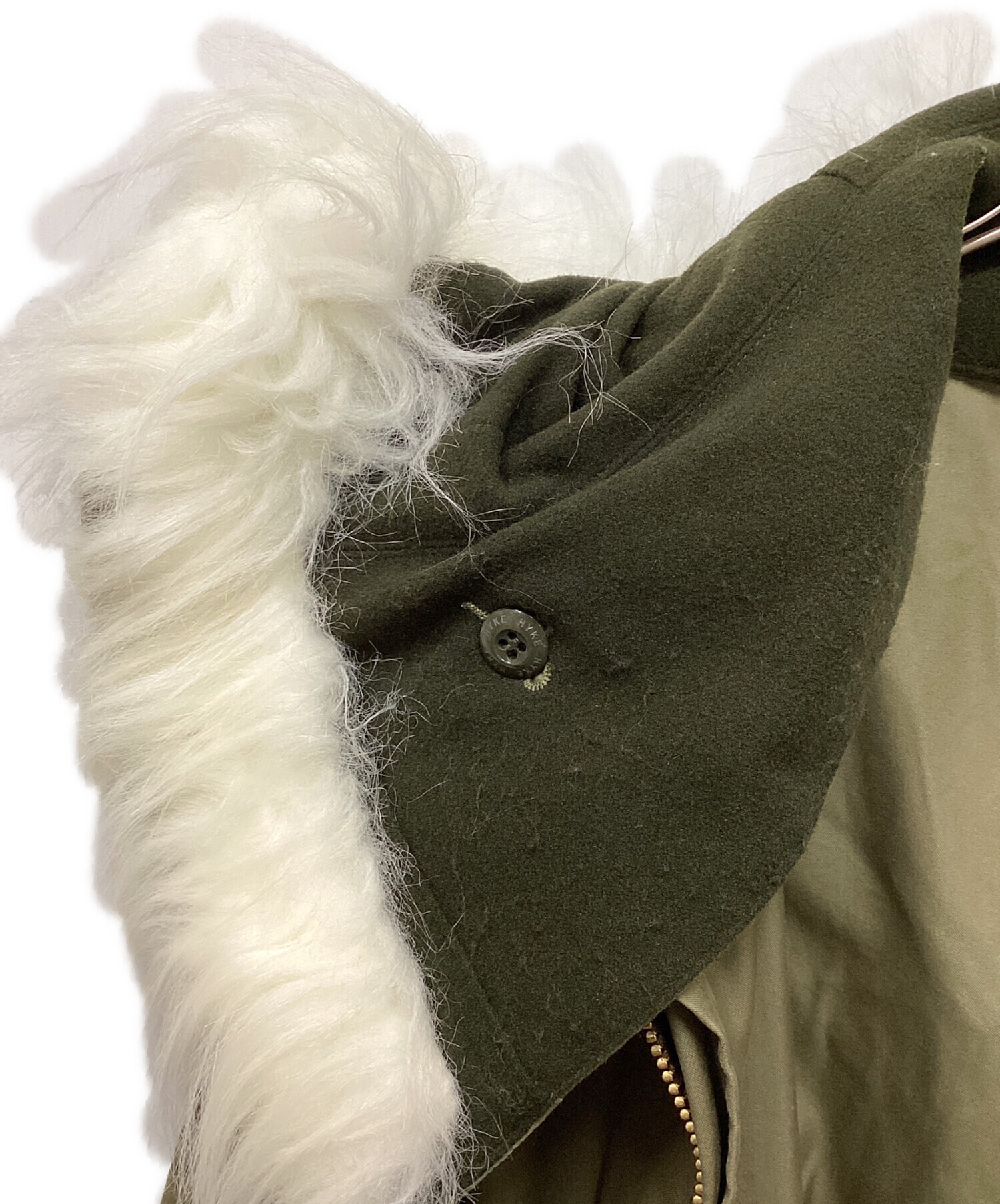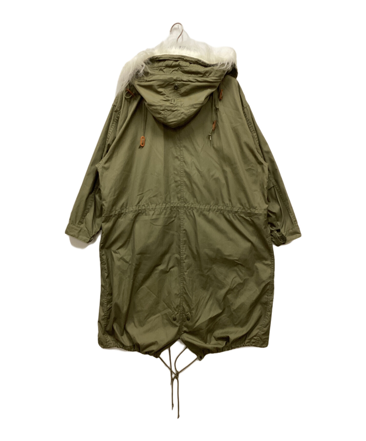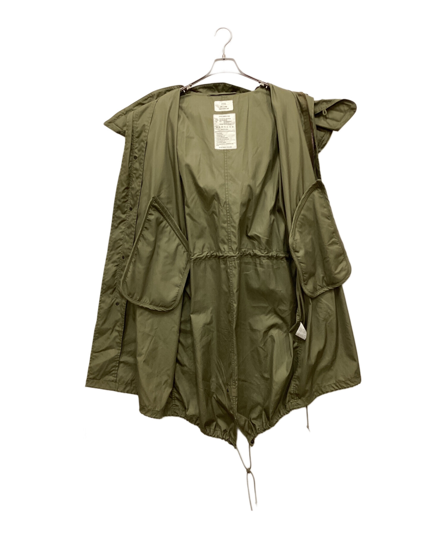 • HYKE(ハイク)HYKE (ハイク) Barneys New York モッズコート オリーブ サイズ:Lの古着・服飾アイテム フード内部毛羽立ち有