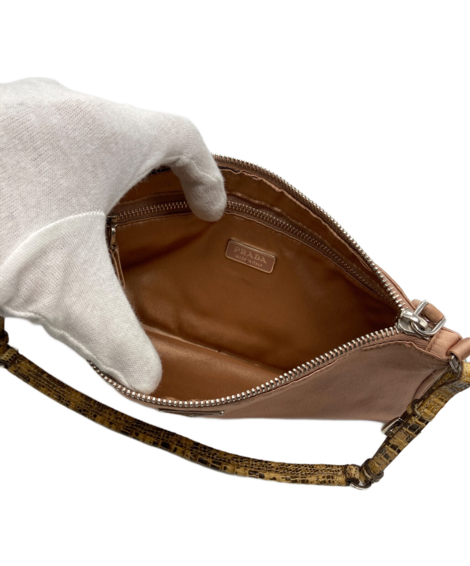 • PRADA(プラダ)PRADA (プラダ) サテンアクセサリーポーチ ピンクの古着・服飾アイテム ホツレ有
