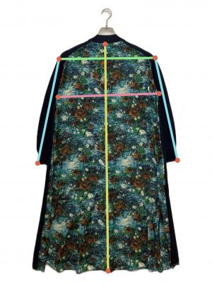 後ろ花プリントワンピース