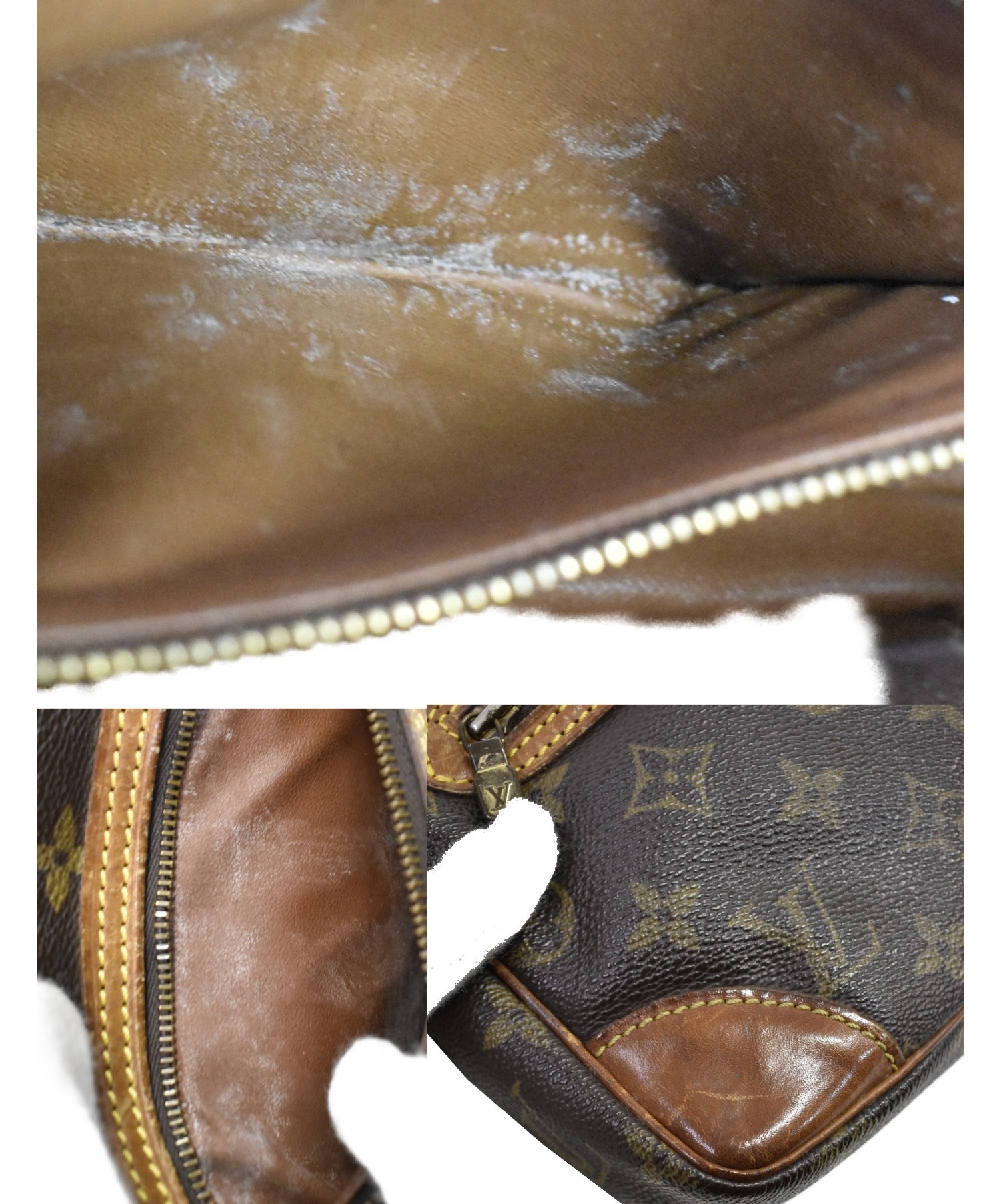 目立つシミや汚れ、におい等がある場合は商品画像や説明文にて極力表記させていただいておりますが、中古品という商品の特性上、全ての瑕疵や不備、洋服直し箇所を撮影・記載をすることは難しくなっております。また、ほとんどのアイテムは店頭と併売しておりますため、出品掲載時からコンディションが変動している場合もございます。あらかじめご了承くださいませ。
