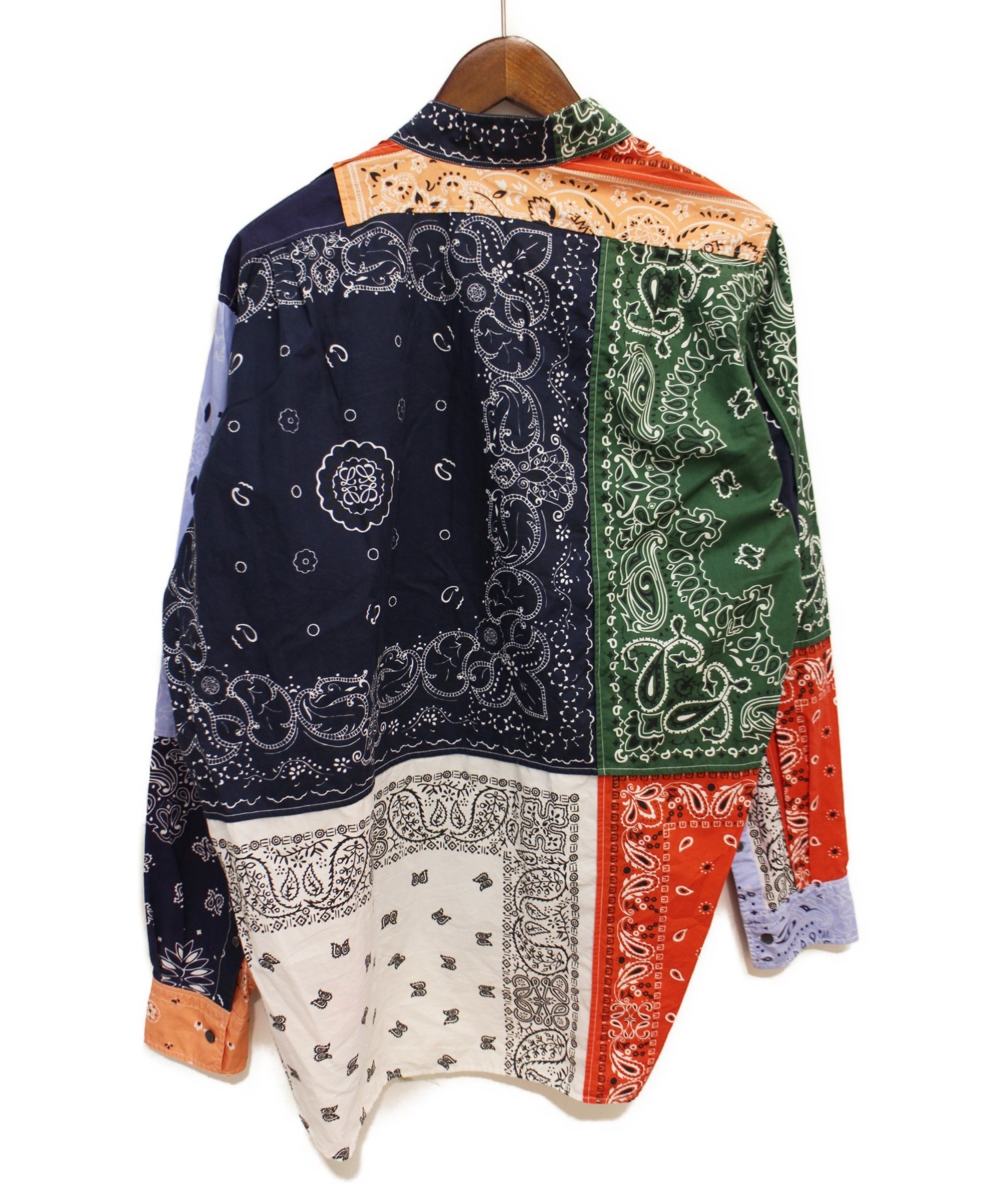 【スタッフコメント】バンダナのパッチワークで再構築されたアシメトリーシャツです。ボタンを掛け違えた様なデザインが特徴的です。