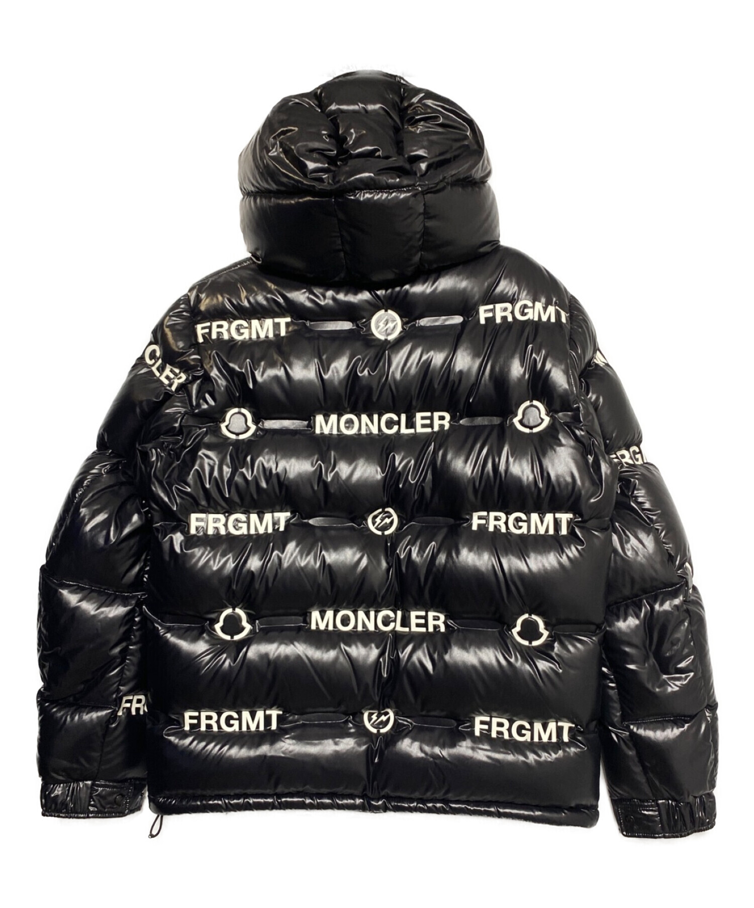 スタッフコメント MONCLERとFRAGMENT DESIGNのコラボアイテムです。両ブランドのロゴプリントが各所に散りばめられたデザインのダウンジャケットです。フード部分は取り外し可能です、