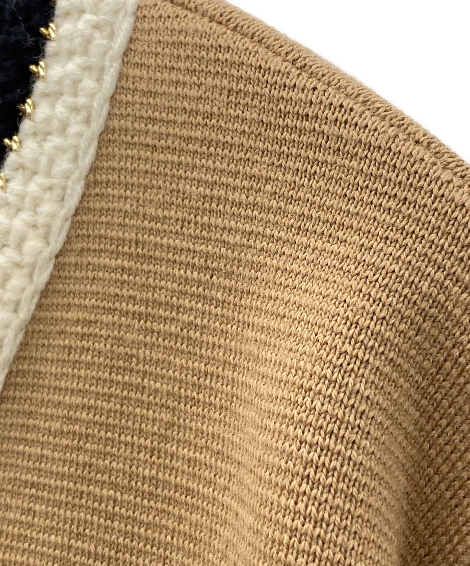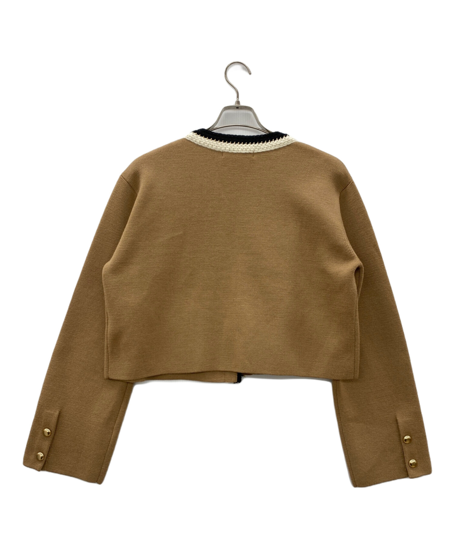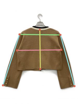 | スタッフコメント | ブラウン基調にゴールドのアクセントが効いた上品な印象のカーディガンです。ショート丈かつ、袖口に向かって広がるシルエットが特徴的です。パンツスタイルにもスカートスタイルにも合わせやすい万能な一着です。 |