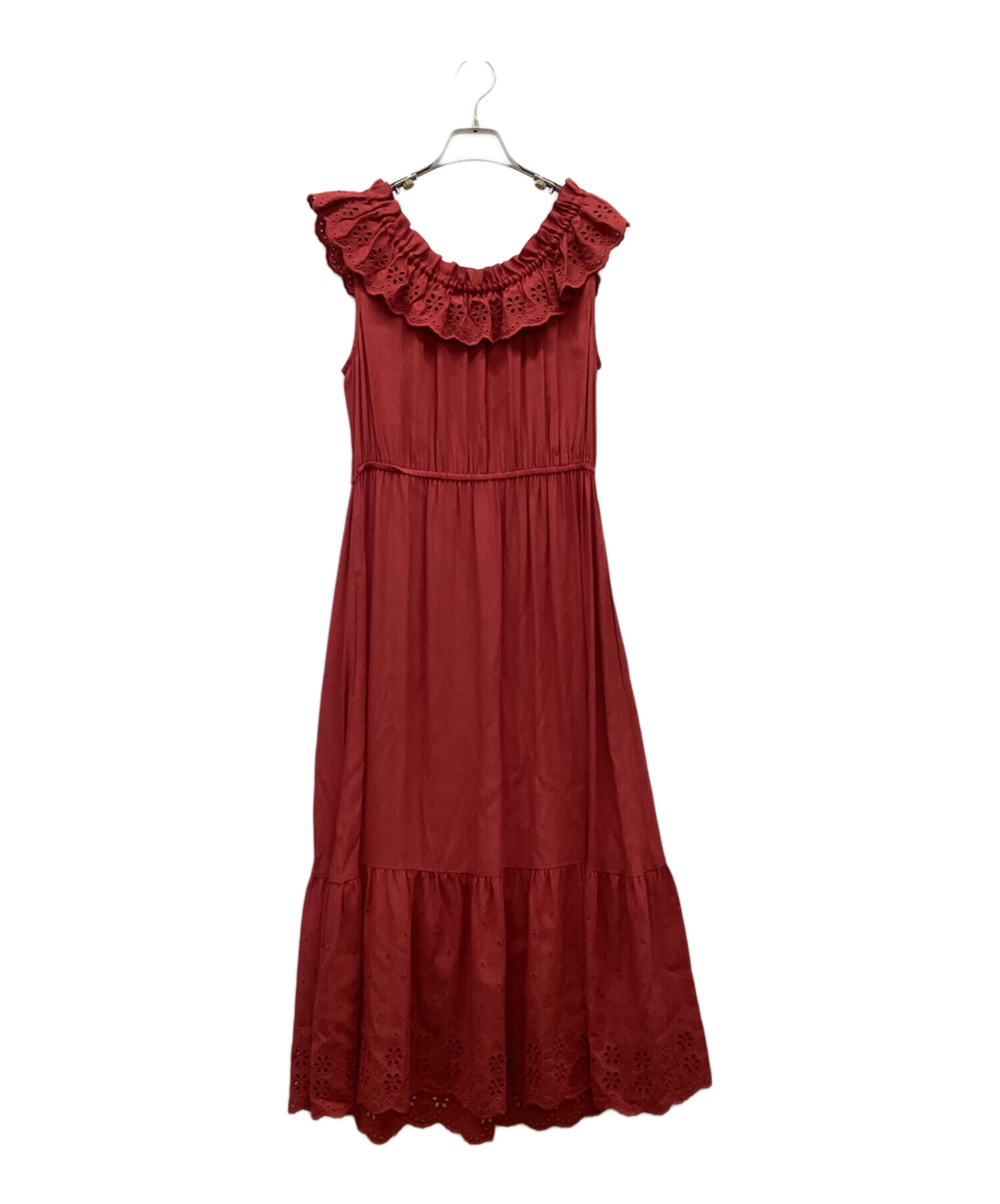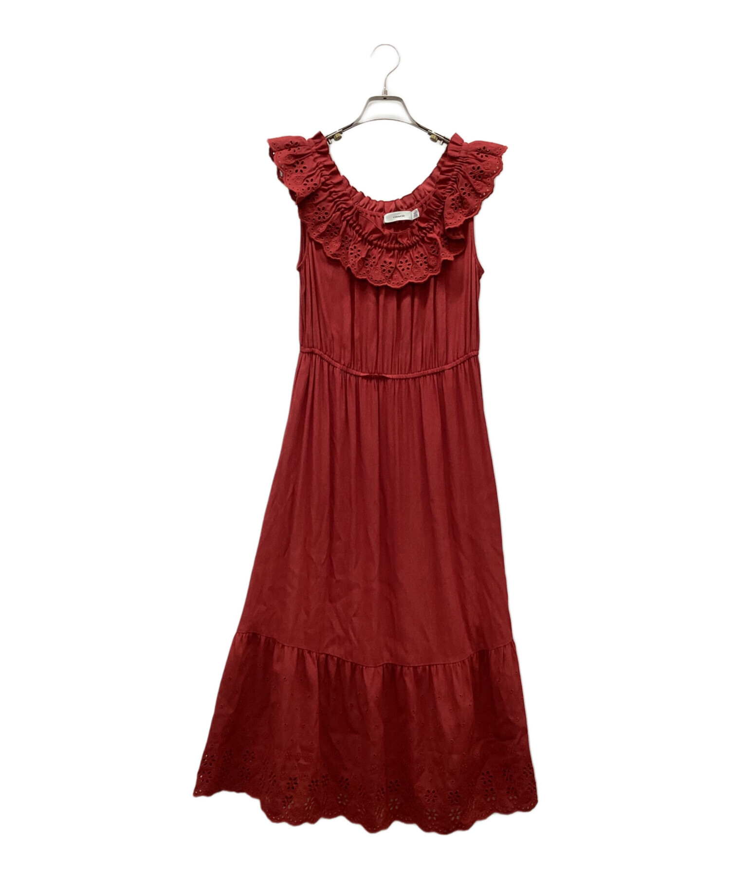スタッフコメント COACH(コーチ)の深い赤と、袖から胸元にかけてのレースがおしゃれなドレスです。ポケットが両サイドについています。