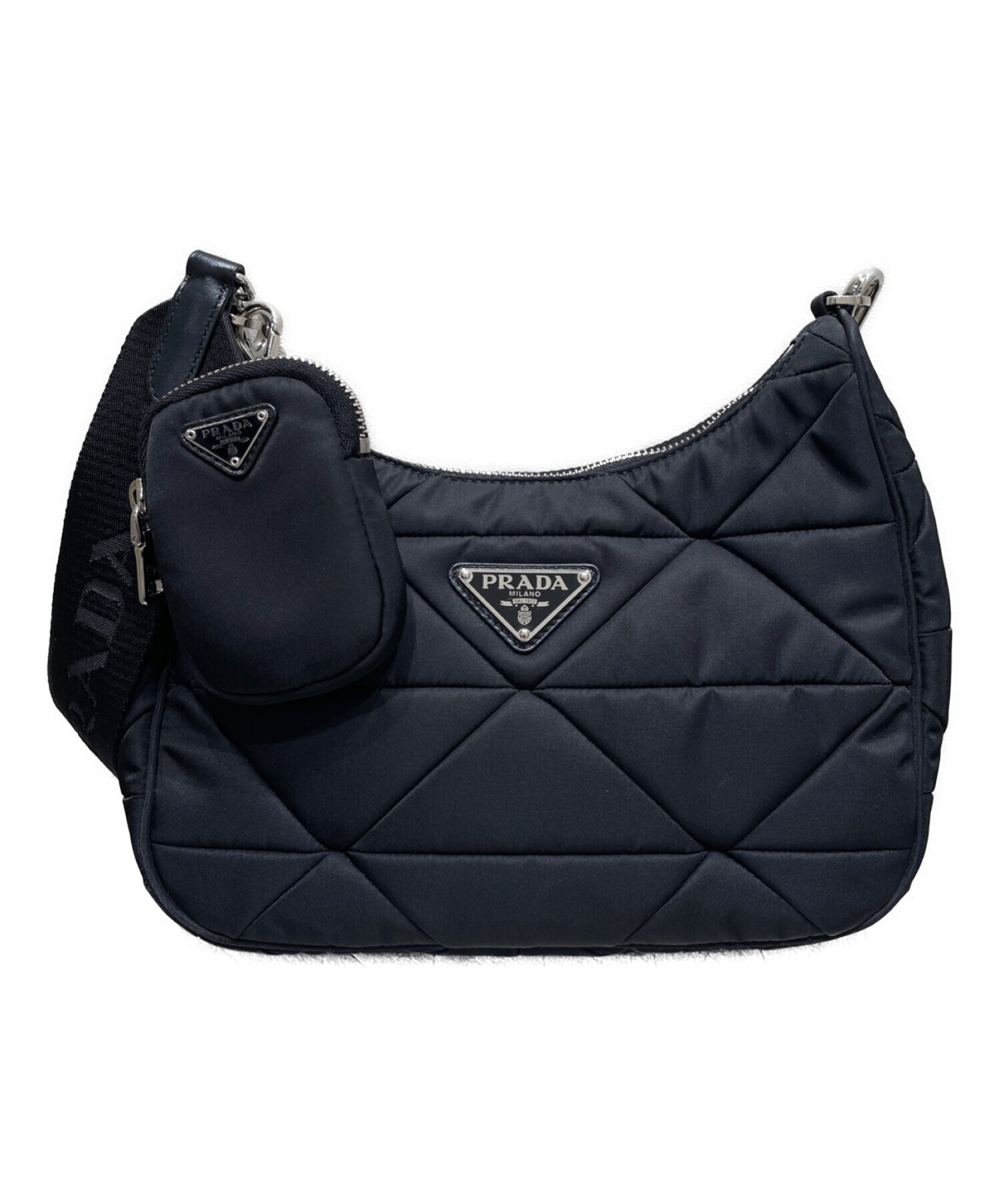 | スタッフコメント | プラダ定番の三角プレートに、小ぶりなポーチがアクセントとなっているショルダーバッグになります。ナイロンを使用した定番素材と、スマートなデザインから、幅広いシーンでお使い頂けるアイテムです。 |