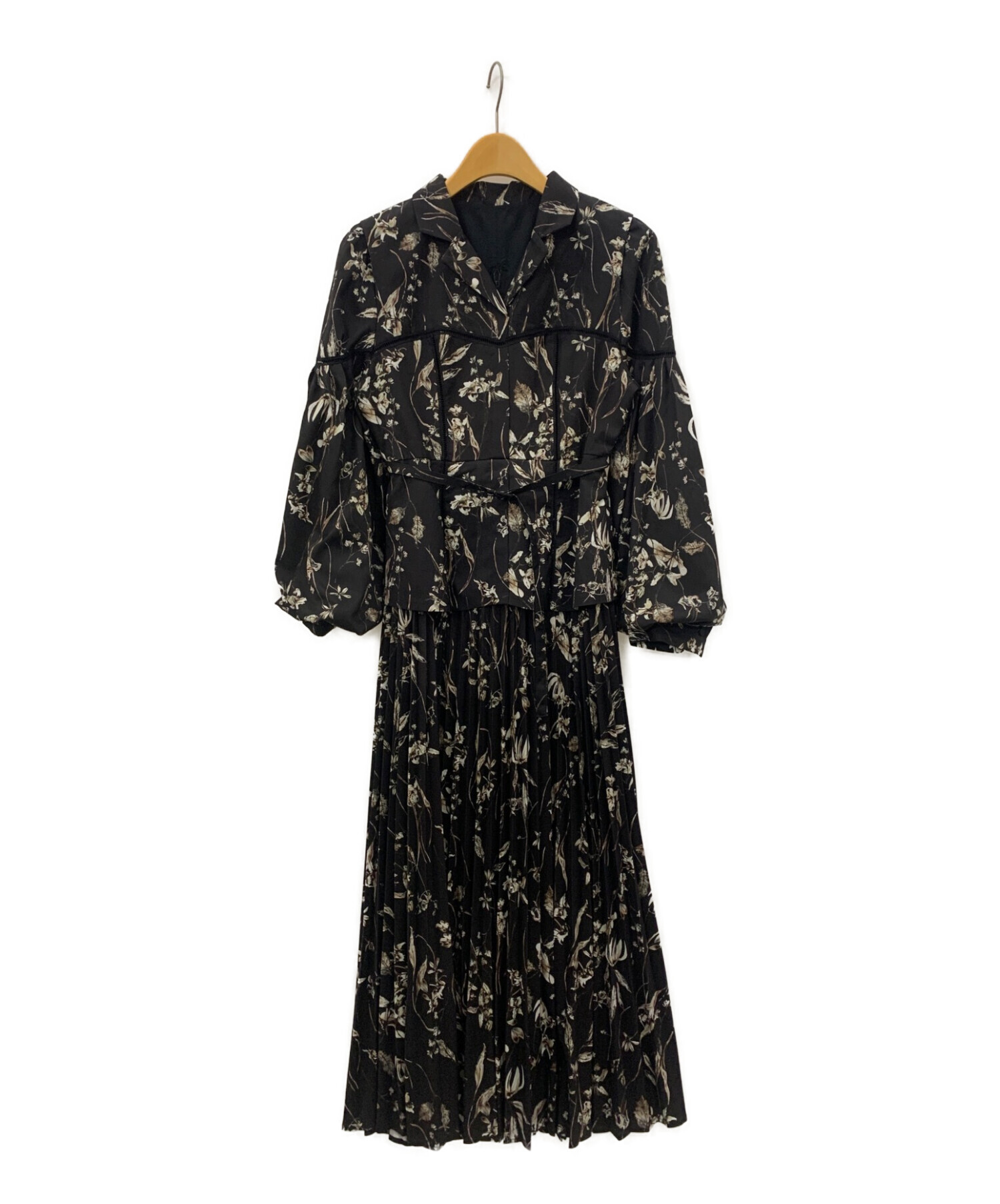 | スタッフコメント | ベストをモチーフにしたデザインが特徴の花柄ワンピースです。胸元から袖にかけて施されたはしごレースや、ボリュームスリーブもポイントです。生地は薄手でさらりとした生地を使用しております。ウエストベルトでお好みのシルエットが楽しめます。 |