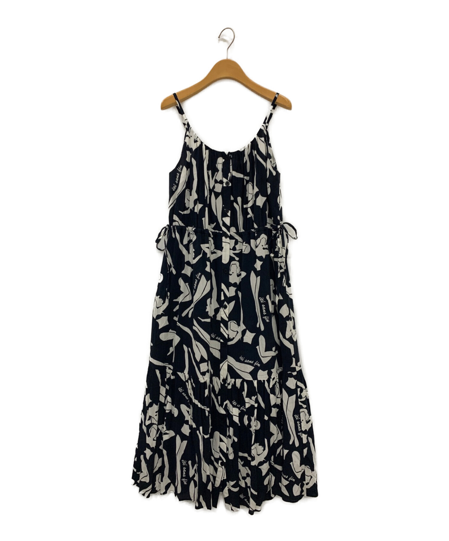 | スタッフコメント | 全面にあしらわれたスイムガール柄が目を引くティアードキャミソールワンピースです。生地は滑らかで柔らかいレーヨン100%素材を使用しており、サラサラとした肌当たりで着心地抜群です。ウエストの両サイドに施されたリボンを絞ってメリハリのあるシルエットでご着用いただけます。 |