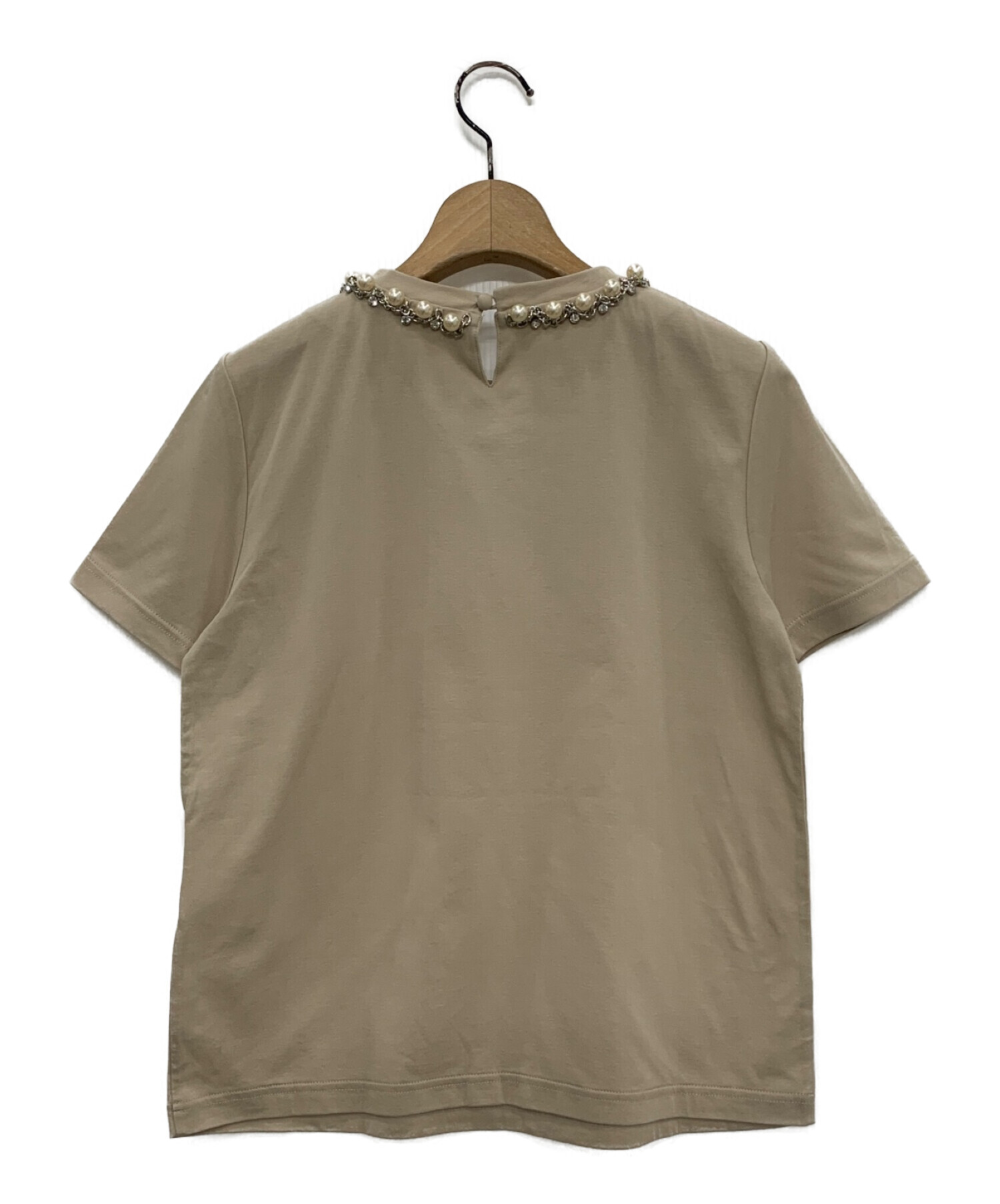 | スタッフコメント | ネックラインに施されたビジューが目を引くクルーネックTシャツです。コットンを混紡した生地はさらりとした肌当たりで着心地の良い仕上がりになっています。コンパクトなサイズ感でスッキリとご着用いただけます。 |