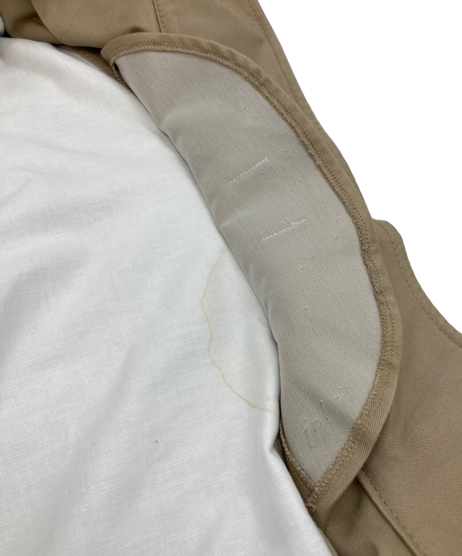 目立つシミや汚れ、におい等がある場合は商品画像や説明文にて極力表記させていただいておりますが、中古品という商品の特性上、全ての瑕疵や不備、洋服直し箇所を撮影・記載をすることは難しくなっております。また、ほとんどのアイテムは店頭と併売しておりますため、出品掲載時からコンディションが変動している場合もございます。あらかじめご了承くださいませ。