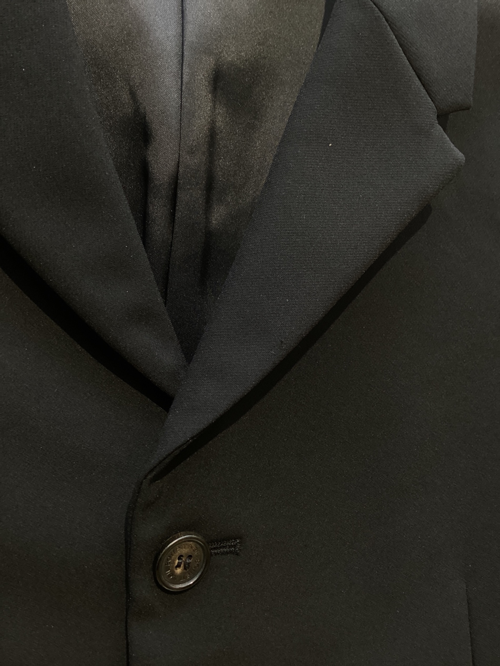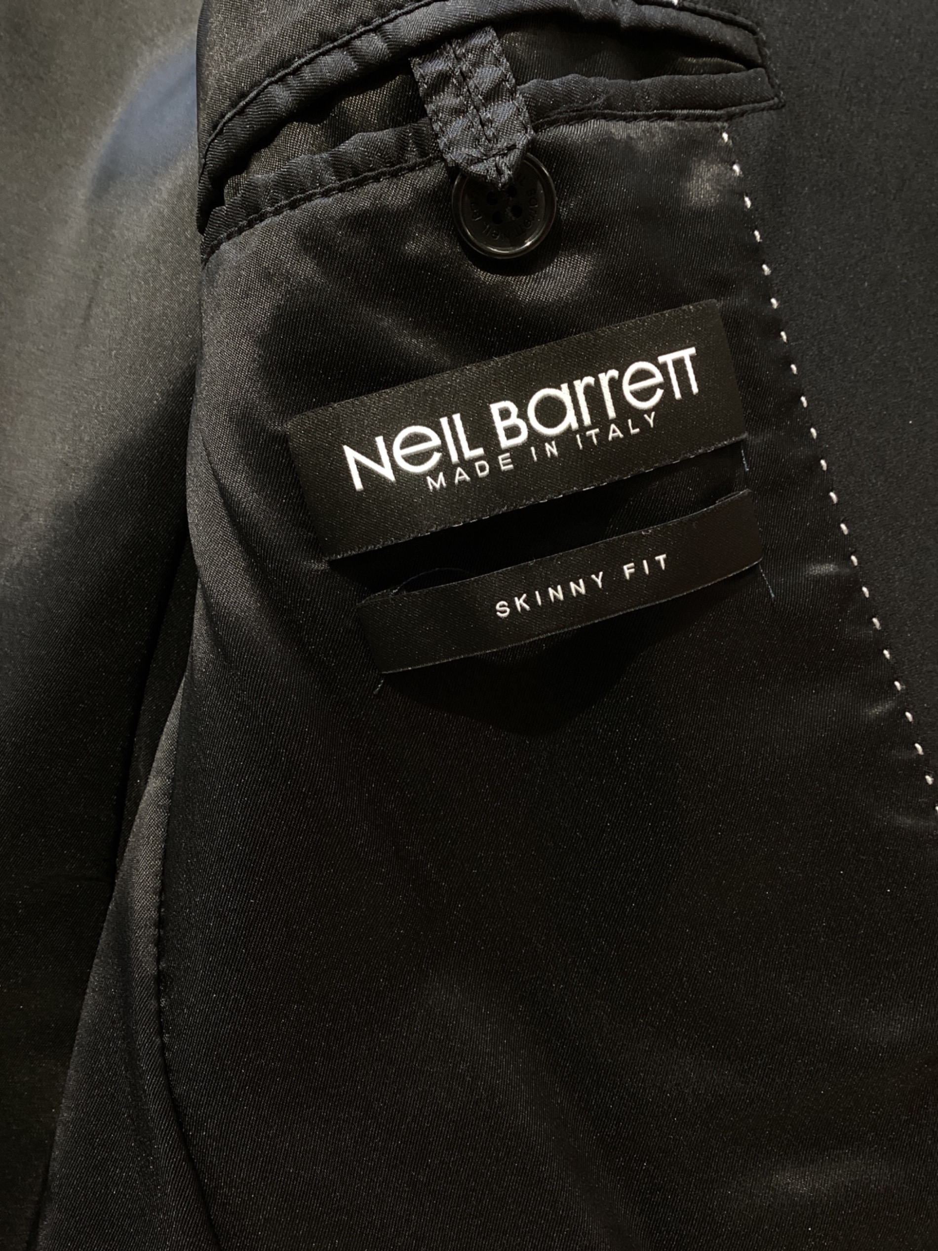 • NEIL BARRETT(ニールバレット)NEIL BARRETT (ニールバレット) ノッチドラペルジャケット ブラック サイズ:48の古着・服飾アイテム 右襟付近 ヨゴレ有