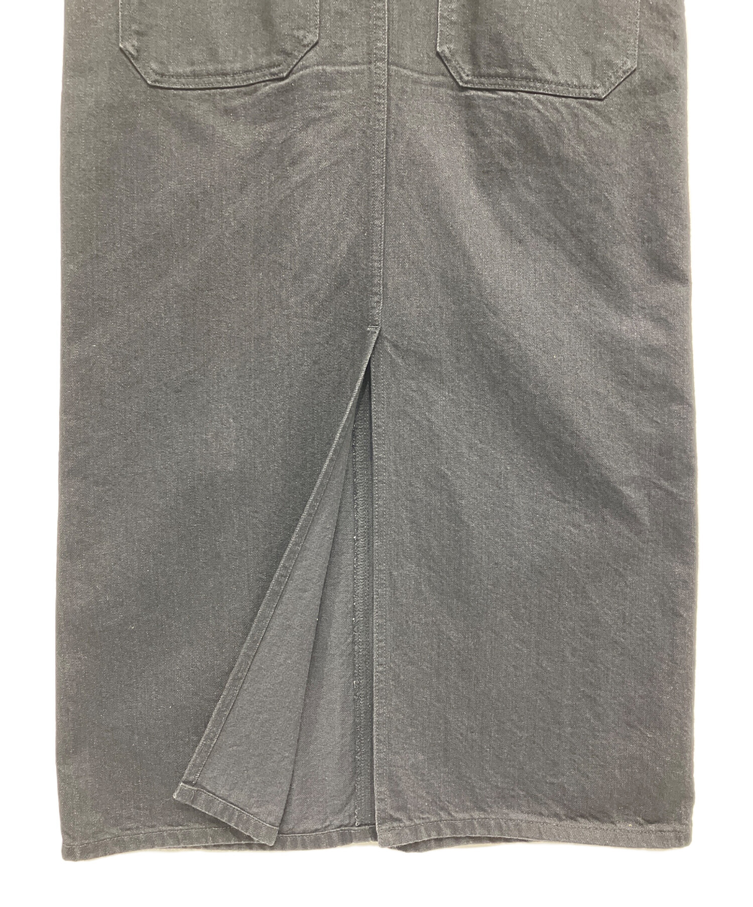 • MACPHEE(マカフィー)MACPHEE (マカフィー) TOMORROW LAND (トゥモローランド) コットンデニム サロペットスカート ブラック サイズ:36の古着・服飾アイテム 前面左ポケット下スレ有