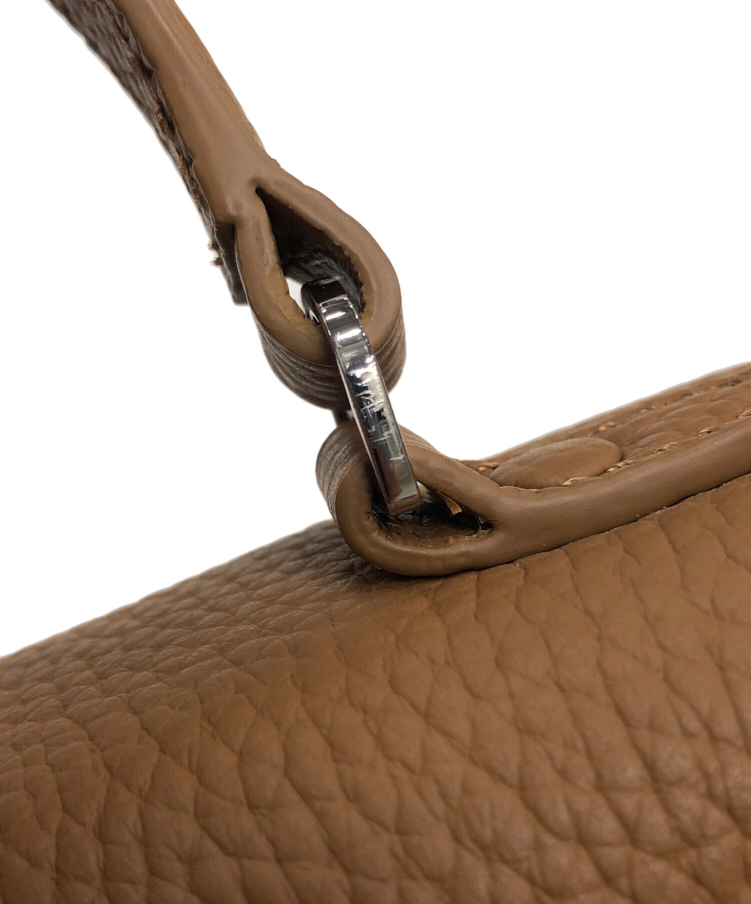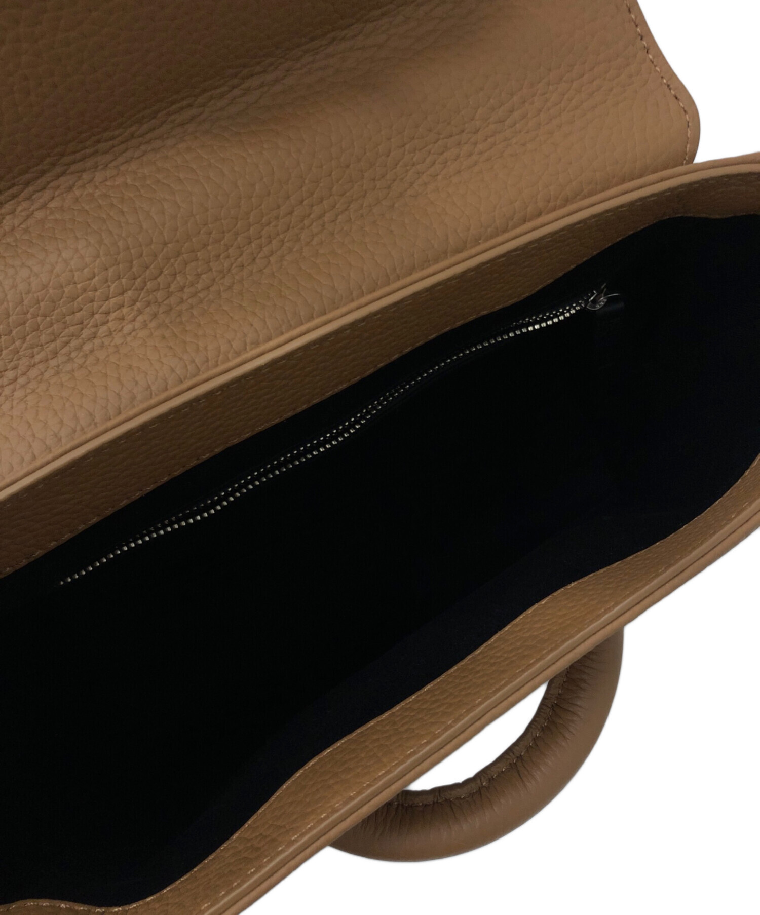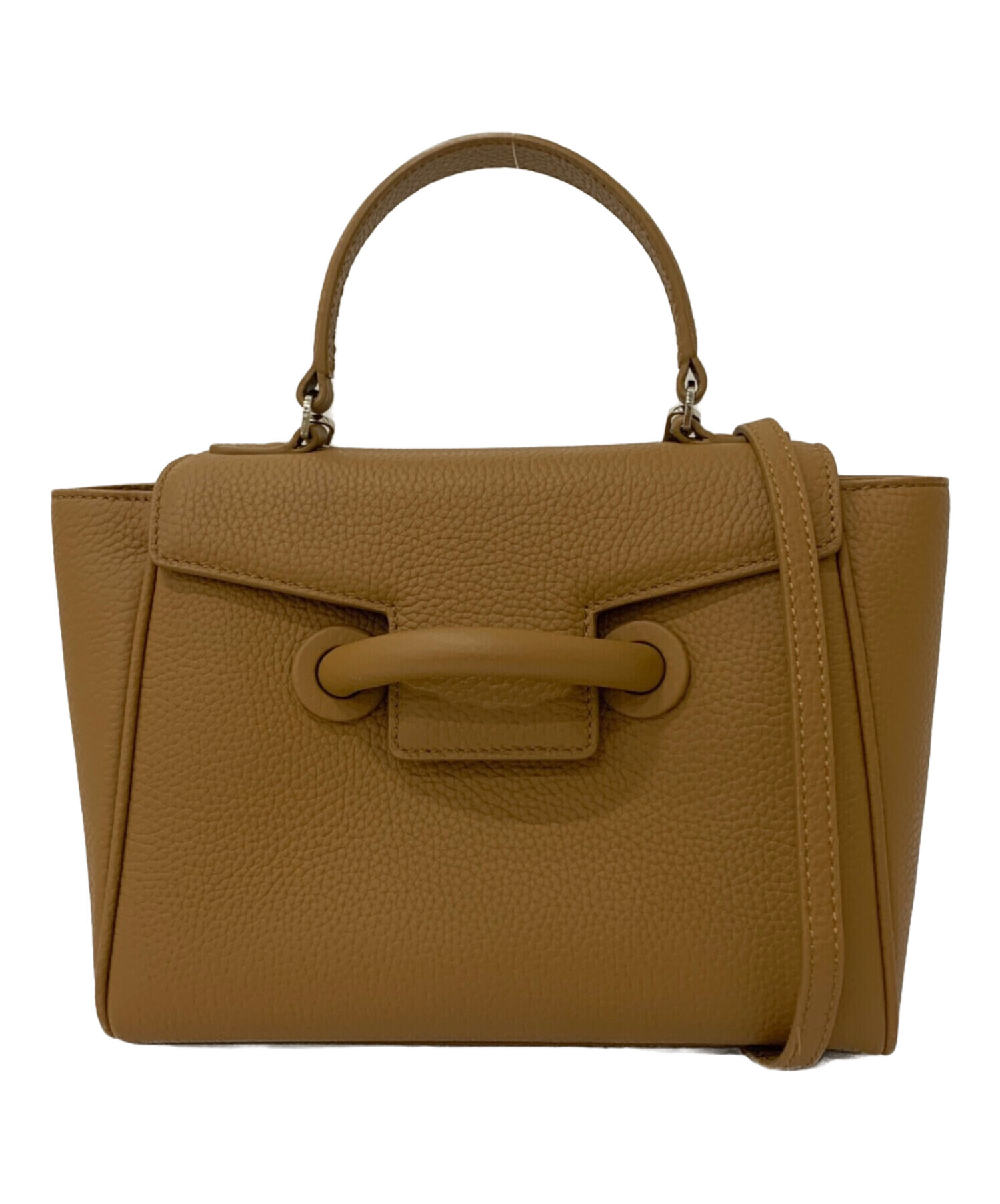 | スタッフコメント | 汎用性の高いキャメルカラーのハンドバッグです。マットな質感のレザー調型押し素材を使用し、ハリのあるしっかりとした仕上がりになっています。コンパクトながら財布や小さめのポーチなども入る収納力です。 |