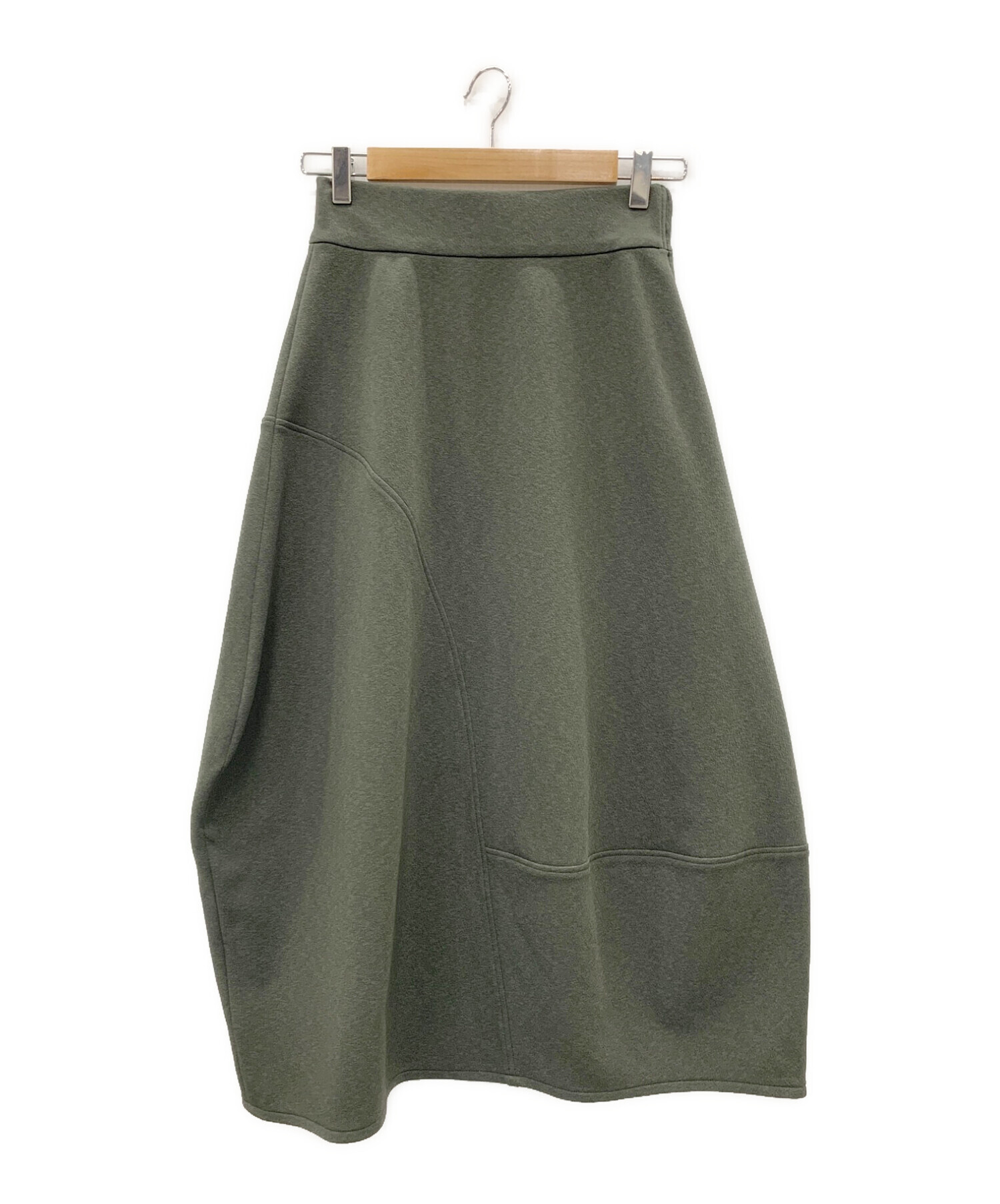 スタッフコメント ラウンド状の切り替えで立体感と丸みのあるシルエットが目を引くロングスカートです。着用すると生まれる上品なドレープがポイントになっています。生地は伸縮性のあるポリエステル100%素材を使用しており、サラサラとした肌当たりで穿き心地の良い仕上がりになっています。存在感のあるデザインでコーディネートのアクセントとしてもオススメのアイテムです。