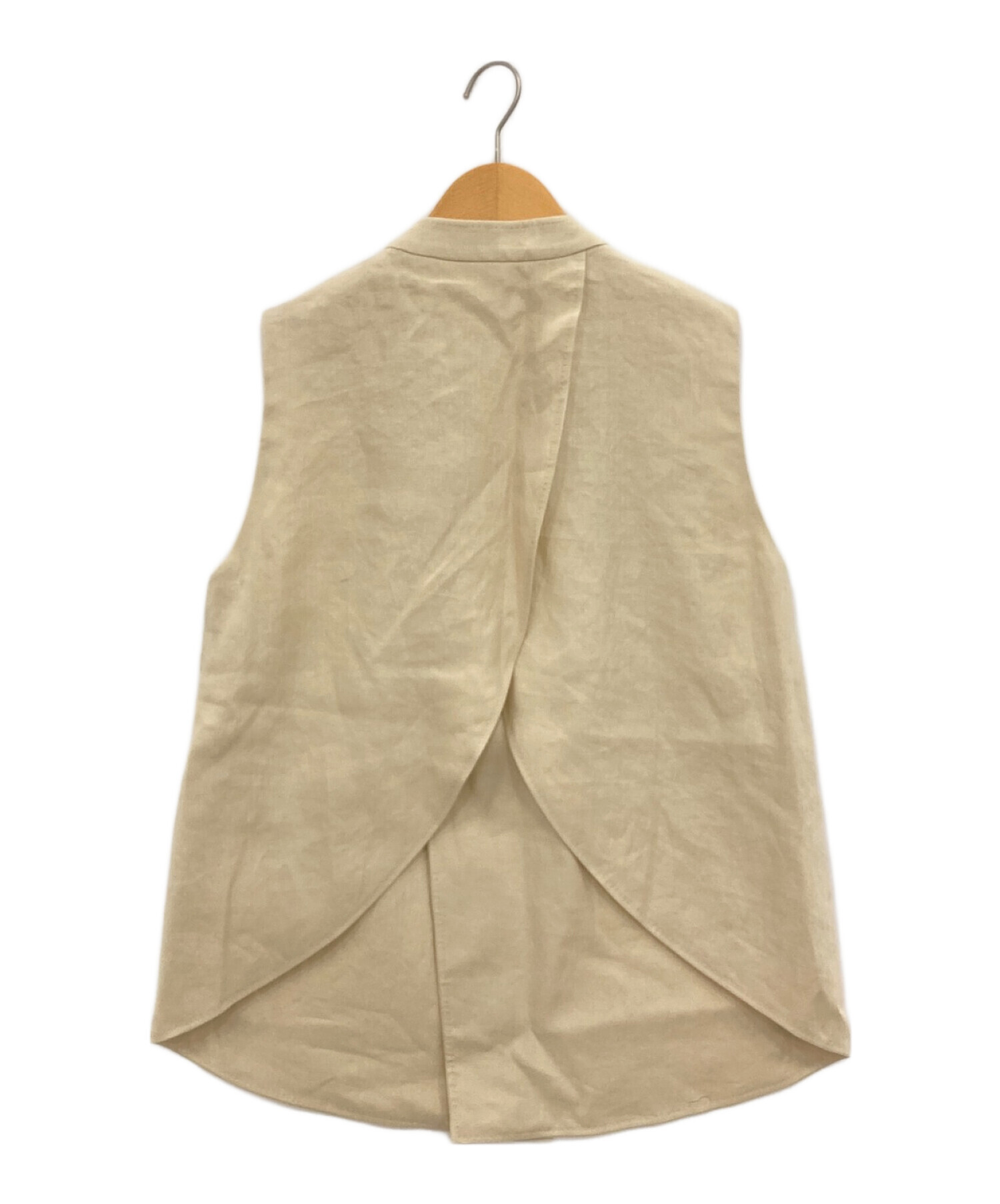 スタッフコメント 柔らかく肌当たりの良いリネン100%生地を使用したベストです。首周りをスッキリとさせたVネックがポイントです。バックは大きなスリットが施されているため、インナーを変えることで様々なコーディネートが楽しめるアイテムです。