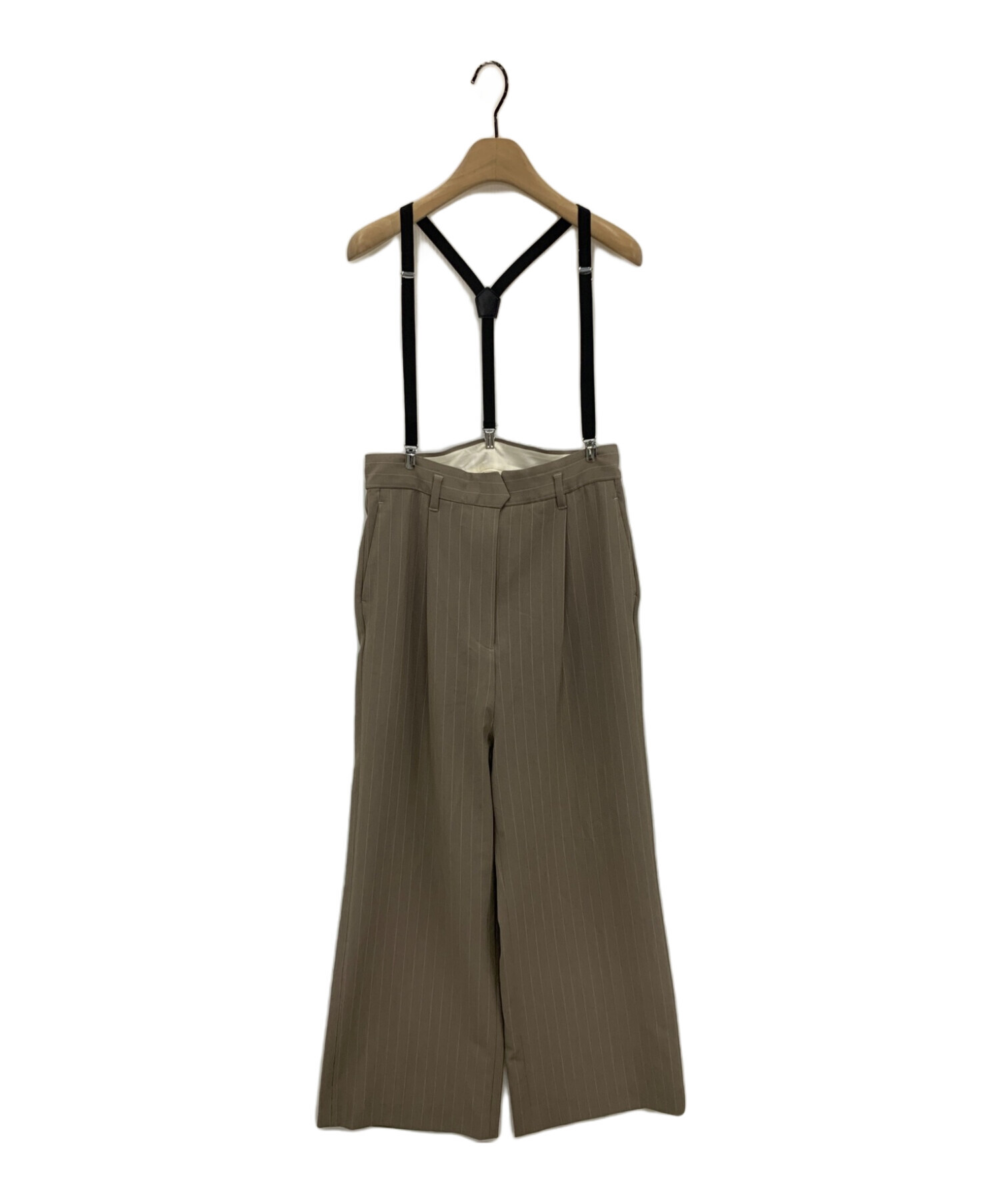 | スタッフコメント | ハイウエストデザインが特徴的なサスペンダー付きピンストライプパンツです。タック入りでゆとりのあるワイドストレートシルエットでご着用いただけます。ストレッチ性に優れ、さらさらとした肌当たりの良い生地を使用しています。 |