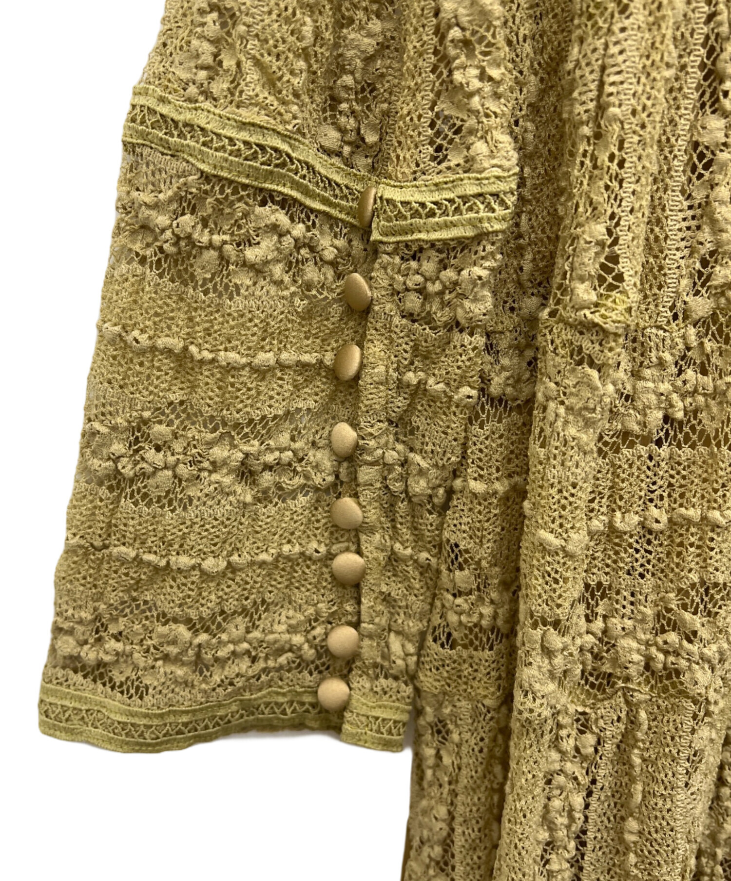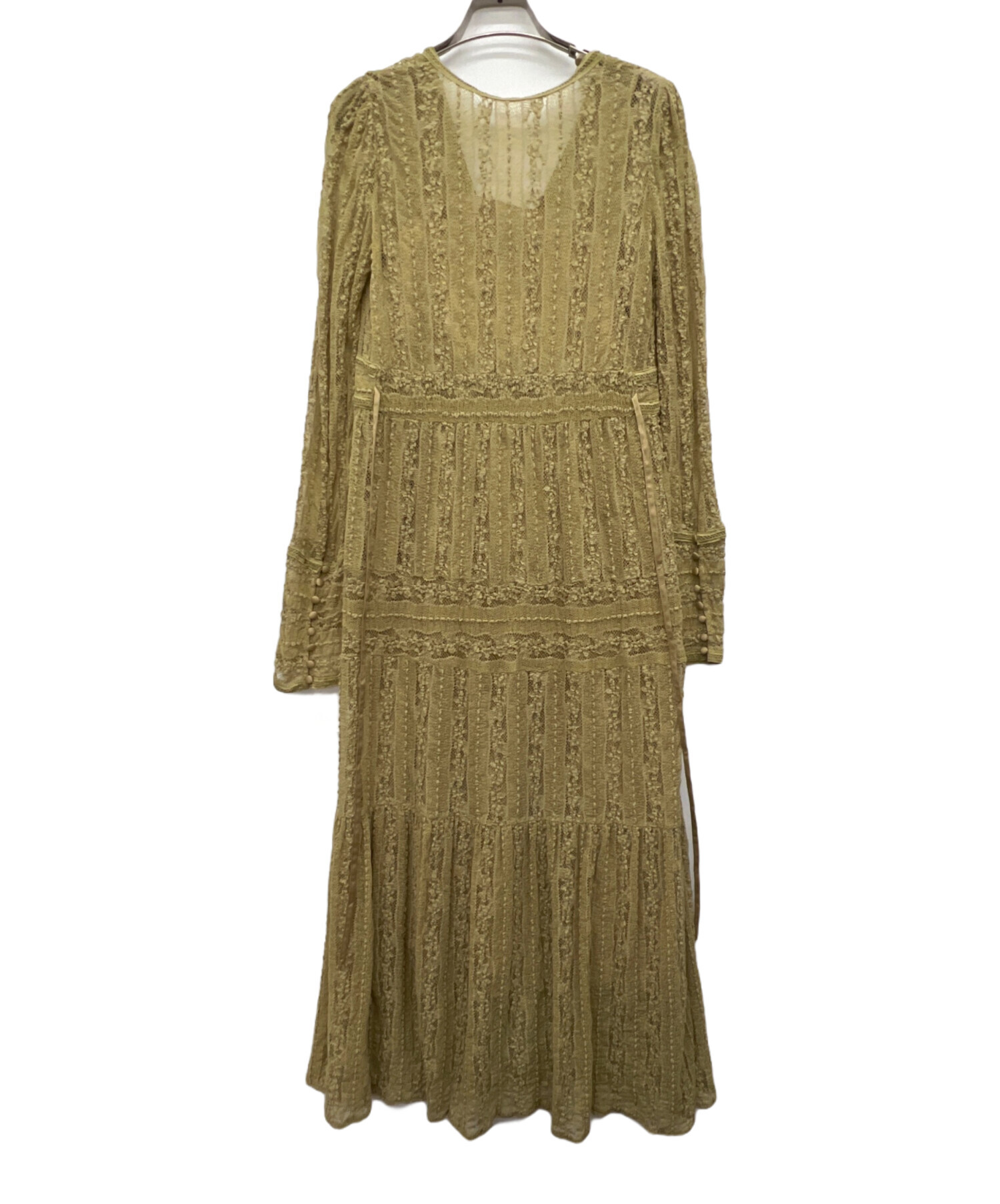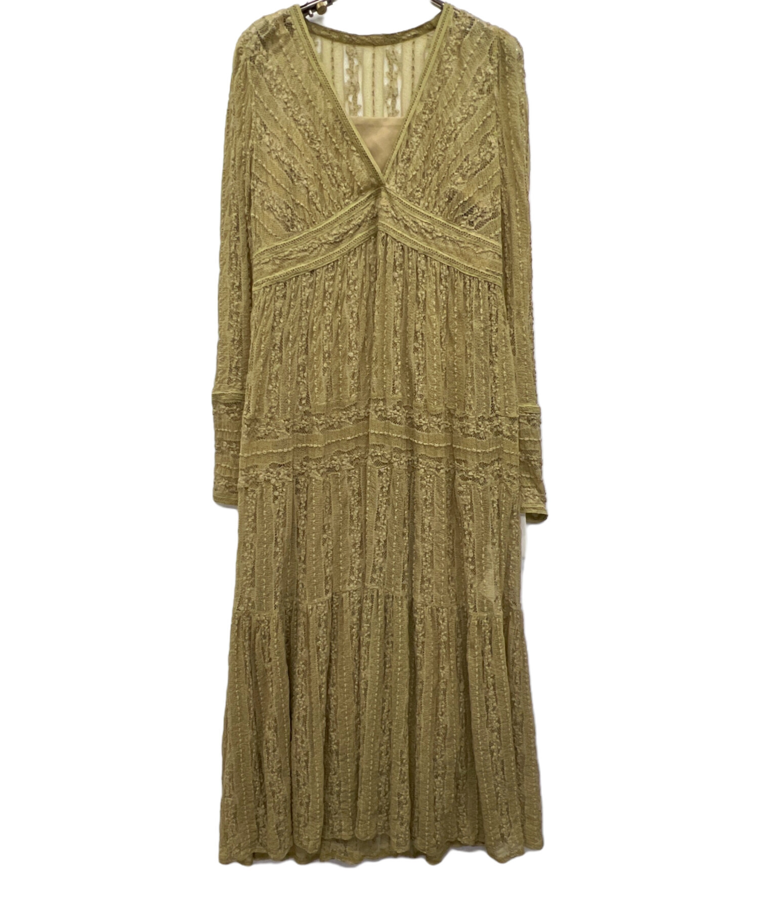 • FRAY ID(フレイ アイディー)FRAY ID (フレイ アイディー) ティアードレースワンピース イエロー サイズ:1の古着・服飾アイテム タグ部分ヨゴレ有