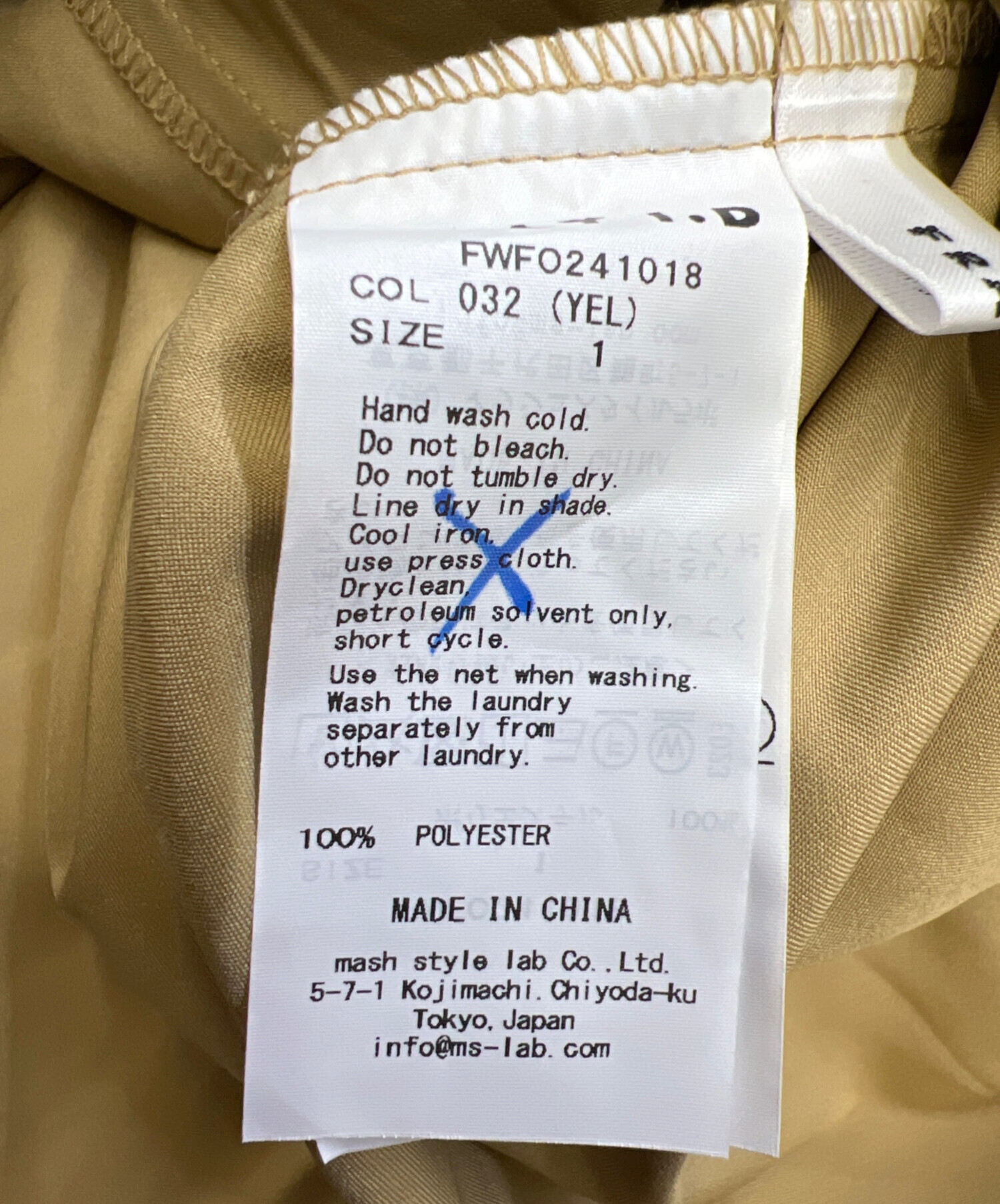 タグ表記サイズ:1( 参考サイズ:S )