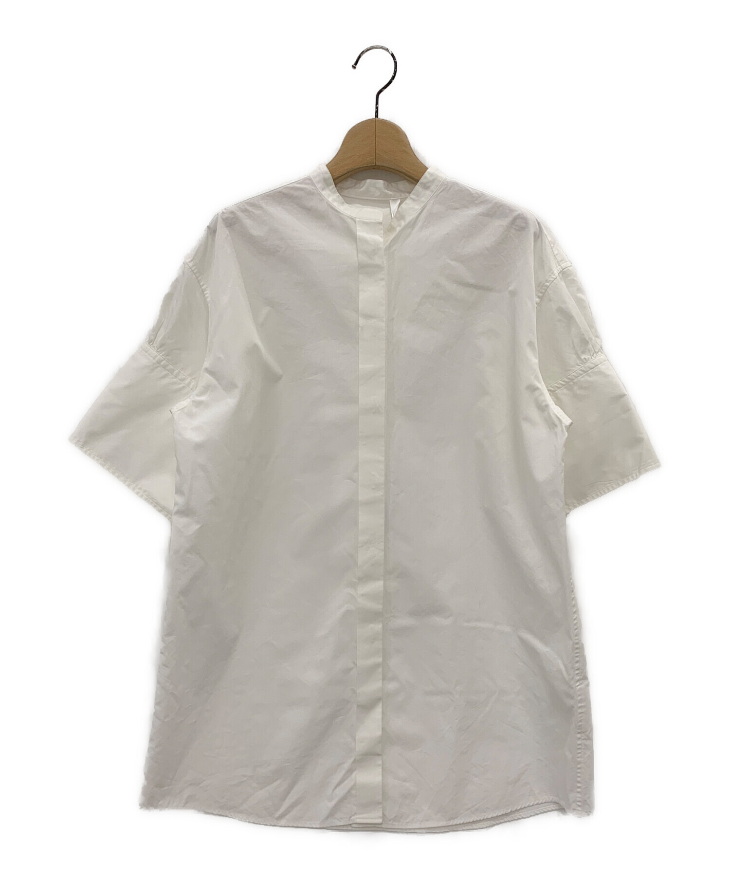| スタッフコメント | スタンドカラーとフロント前立の比翼仕立てでスッキリとしたデザインが特徴のバンドカラーブラウスです。長めに施されたカフスがポイントになっています。コットン100%素材を使用した、ハリのあるさらりとした肌当たりで着心地の良い仕上がりになっています。シンプルなデザインで様々なコーディネートとも合わせやすいアイテムです。 |
