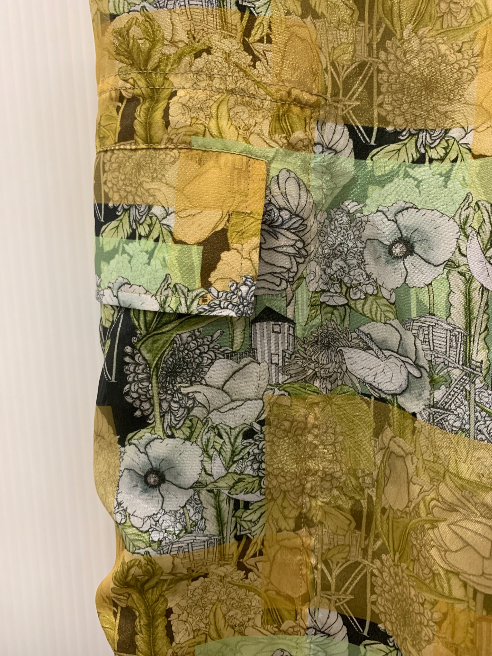 スタッフコメント 透け感のあるさらりとしたサテン生地を使用したイージーパンツです。全体の花柄ともも周りにゆとりを持たせたワイドテーパードシルエットがポイントです。ウエストはゴム仕様で、穿き心地の快適なアイテムです。