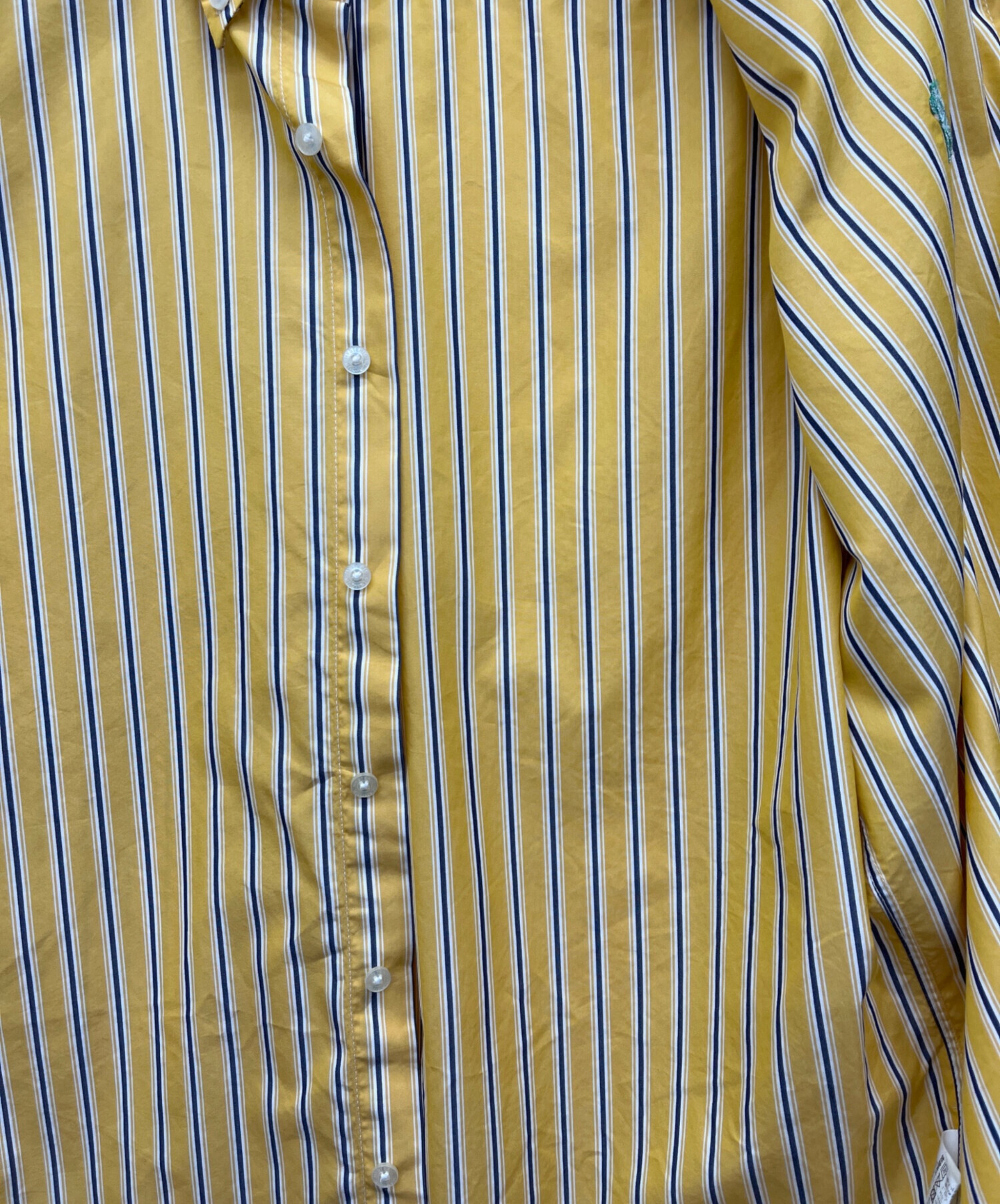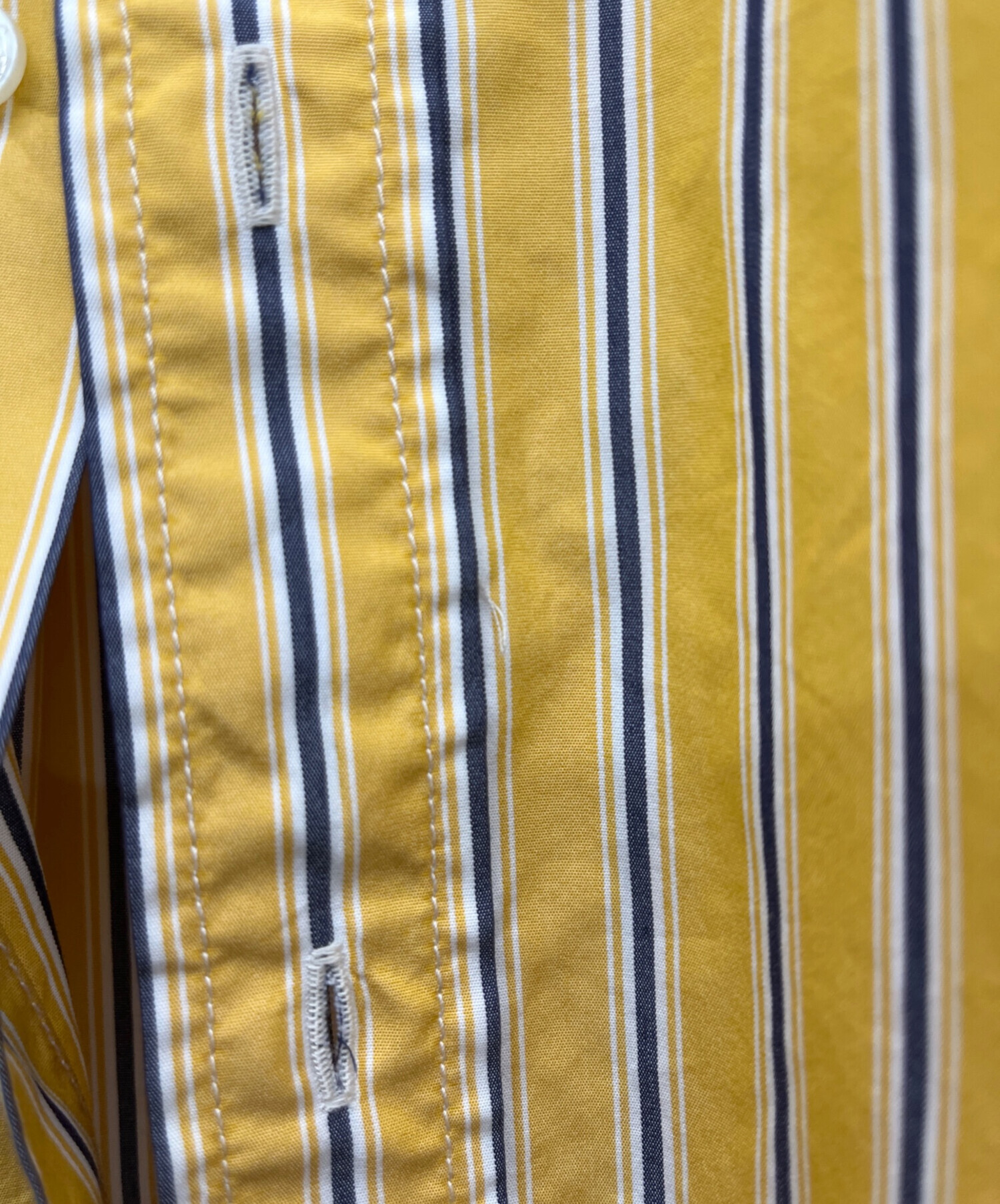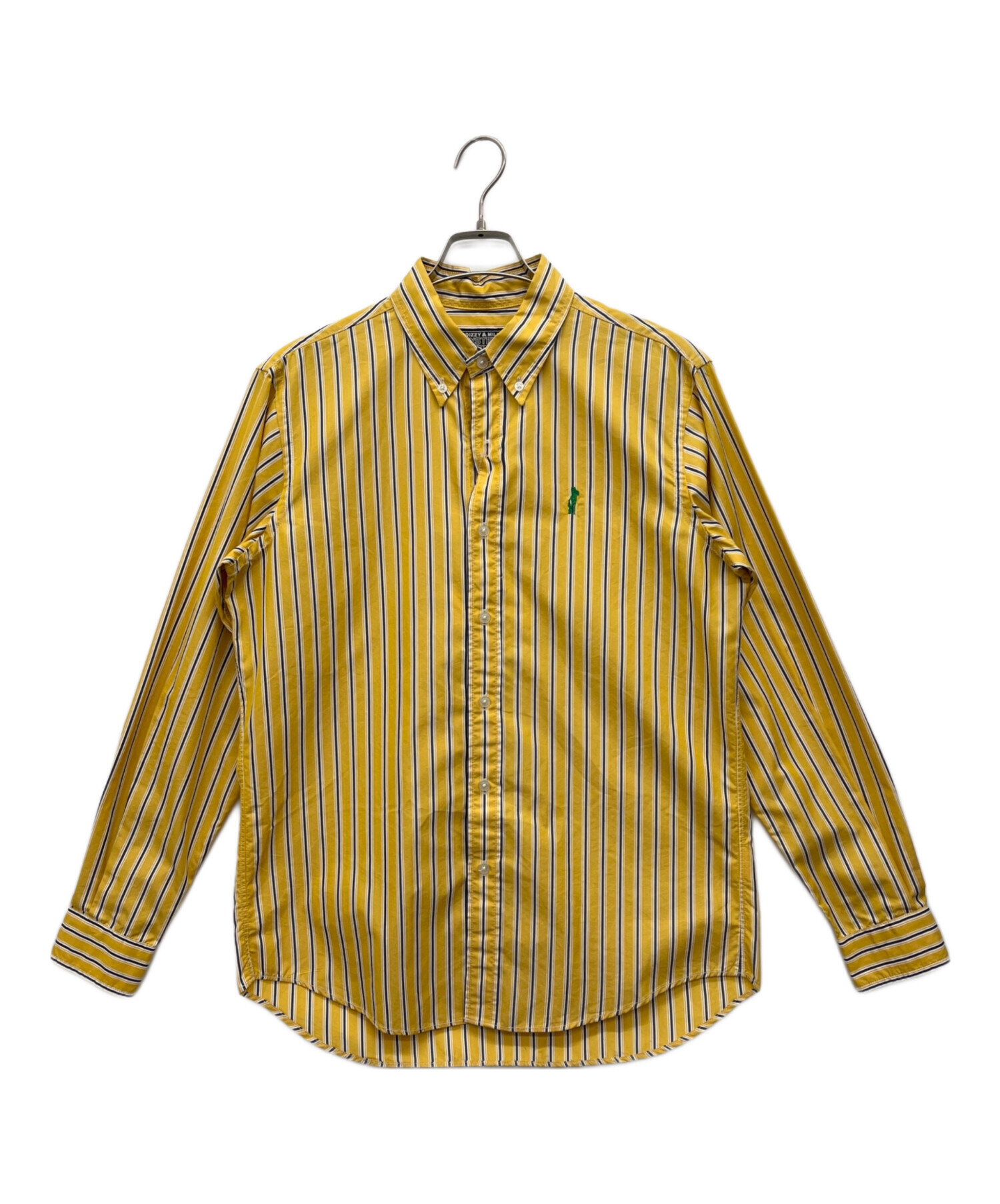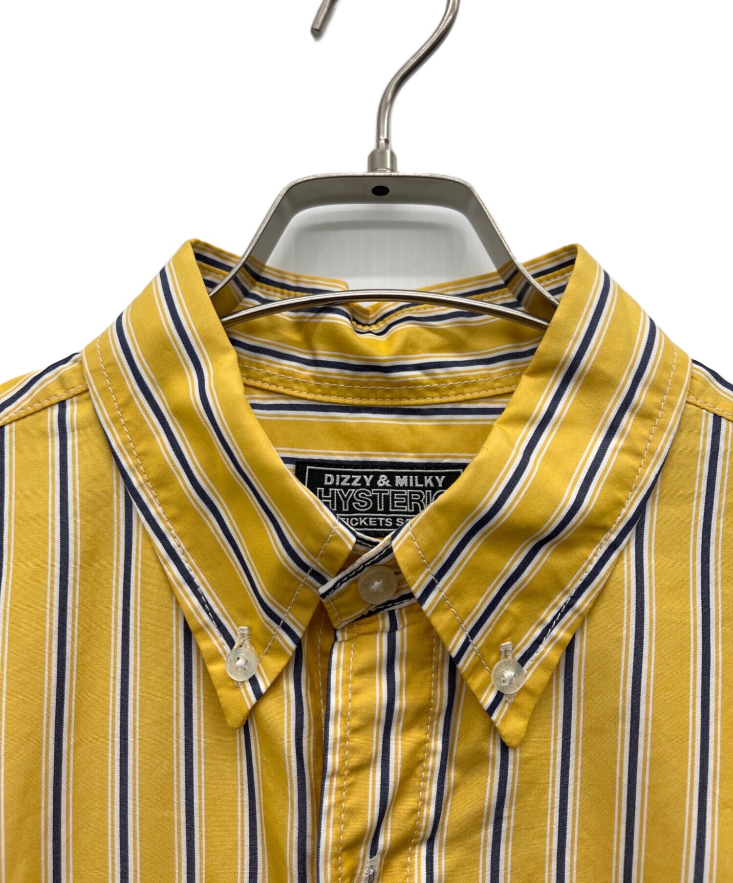 • Hysteric Glamour(ヒステリックグラマー)Hysteric Glamour (ヒステリックグラマー) TIMES刺繍 ランダムストライプ ボタンダウンシャツ イエロー サイズ:Mの古着・服飾アイテム ボタンホール ホツレ有