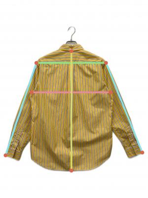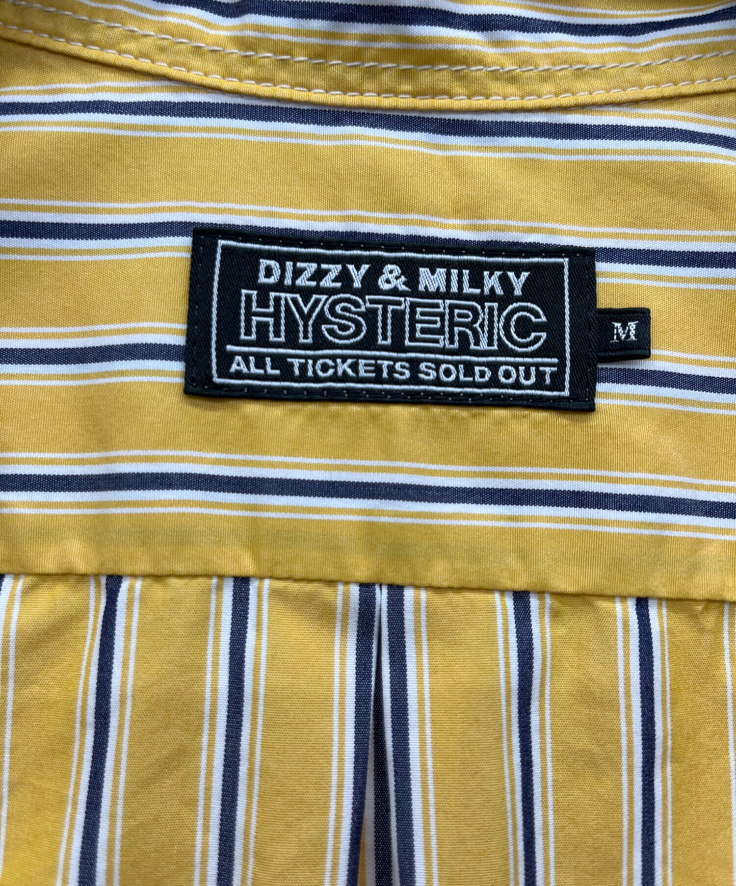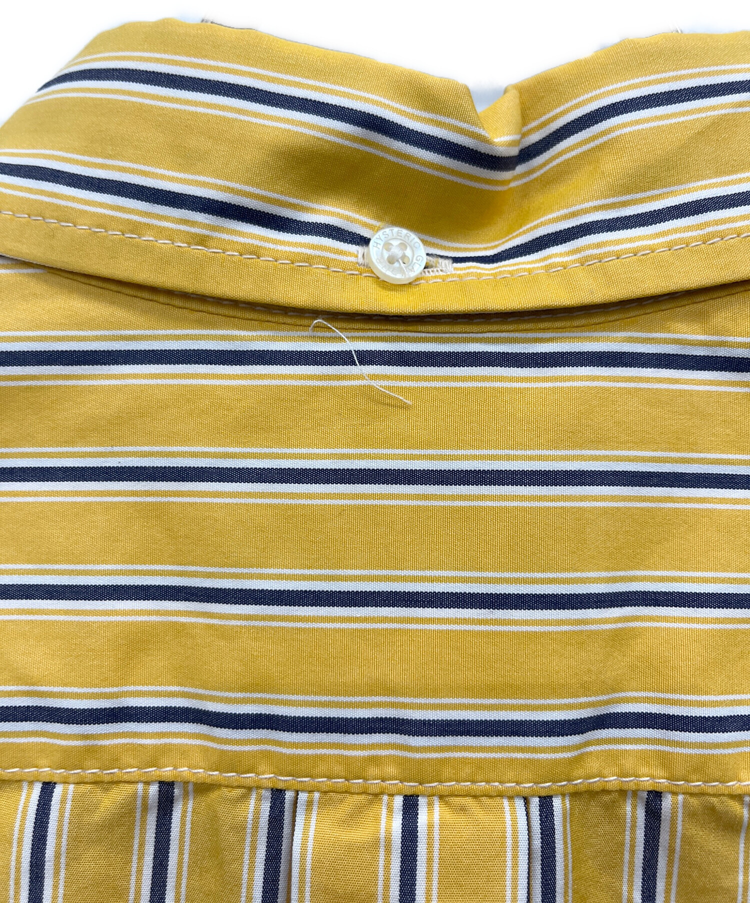 • Hysteric Glamour(ヒステリックグラマー)Hysteric Glamour (ヒステリックグラマー) TIMES刺繍 ランダムストライプ ボタンダウンシャツ イエロー サイズ:Mの古着・服飾アイテム 背面襟部分ホツレ有